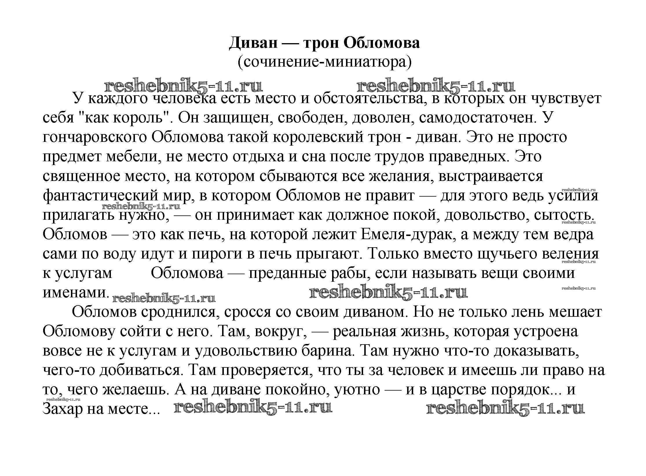 Готовая домашняя работа с ответами по Литературе за 5, 6, 7, 8, 9, 10 класс Белик, Музычук Сочинения Баро-Пресс 2017 - Сочинения по русской литературе Диван — трон Обломова (сочинение-миниатюра)