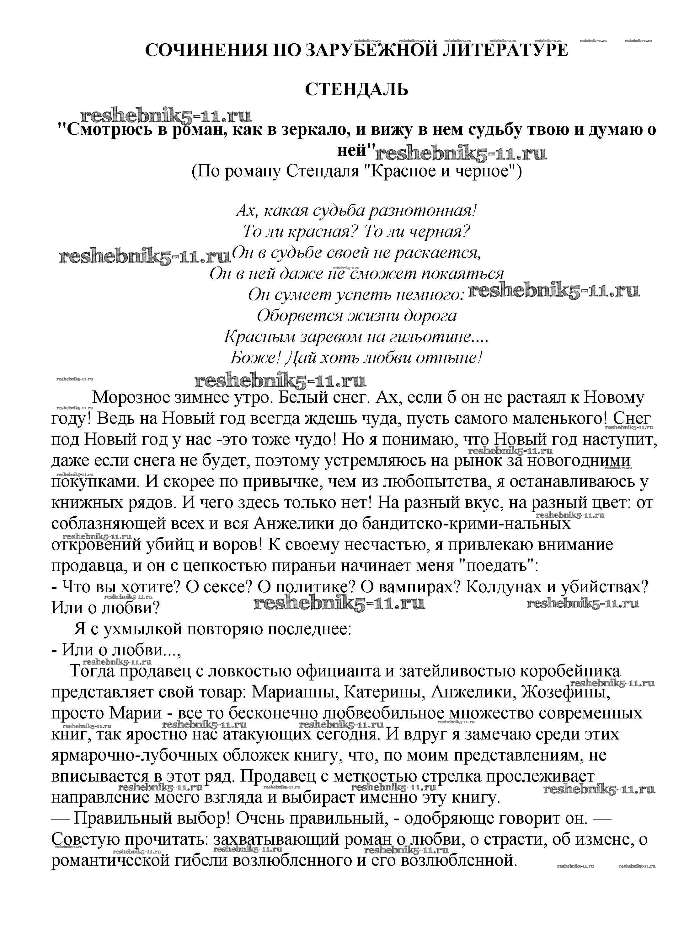 Готовая домашняя работа с ответами по Литературе за 5, 6, 7, 8, 9, 10 класс Белик, Музычук Сочинения Баро-Пресс 2017 - Сочинения по зарубежной литературе "Смотрюсь в роман, как в зеркало, и вижу в нем судьбу твою и думаю о ней" (По роману Стендаля "Красное и черное")