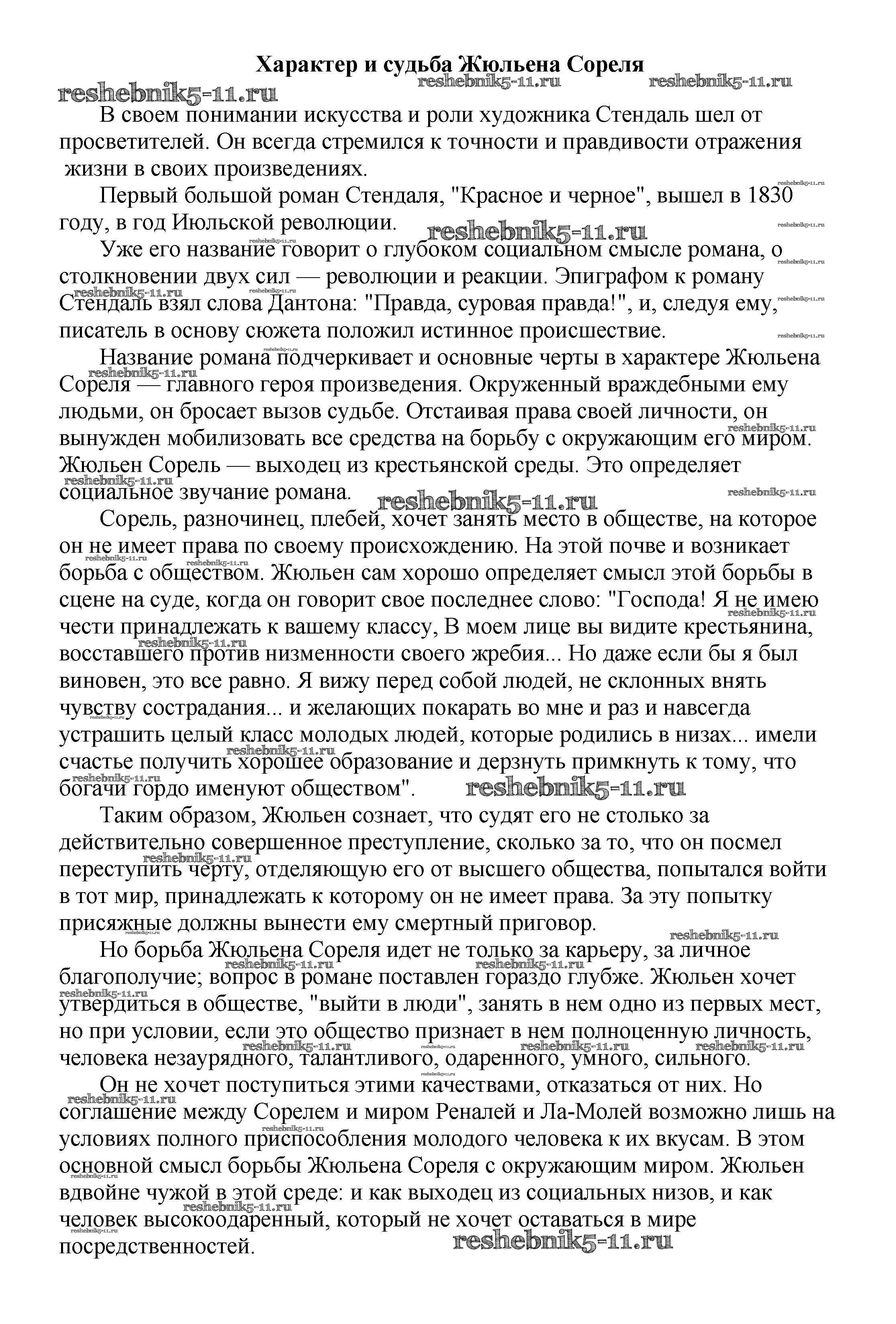 Готовая домашняя работа с ответами по Литературе за 5, 6, 7, 8, 9, 10 класс Белик, Музычук Сочинения Баро-Пресс 2017 - Сочинения по зарубежной литературе Характер и судьба Жюльена Сореля