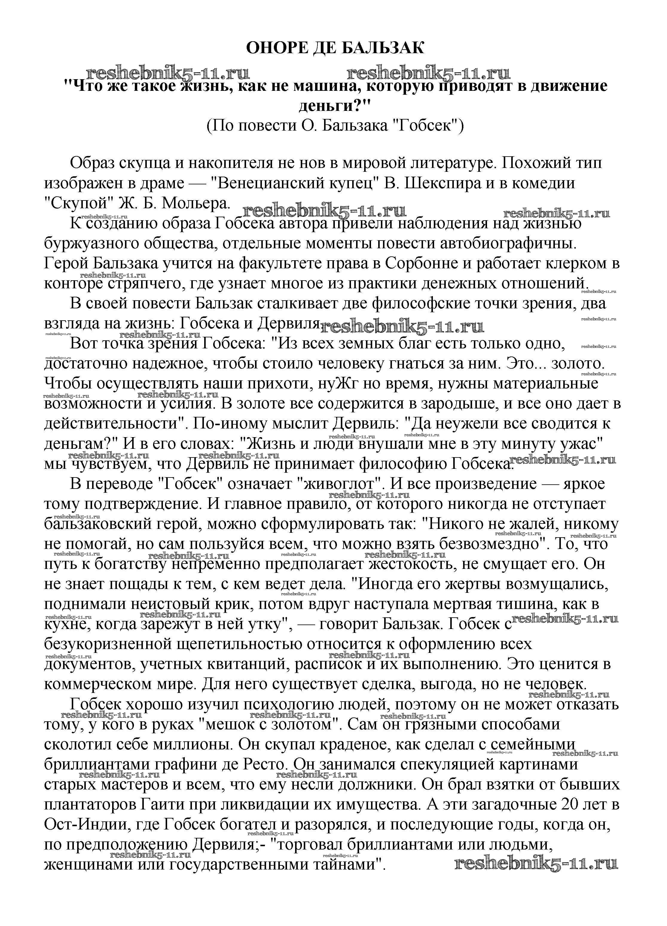 Готовая домашняя работа с ответами по Литературе за 5, 6, 7, 8, 9, 10 класс Белик, Музычук Сочинения Баро-Пресс 2017 - Сочинения по зарубежной литературе "Что же такое жизнь, как не машина, которую приводят в движение деньги?" (По повести О. Бальзака "Гобсек")