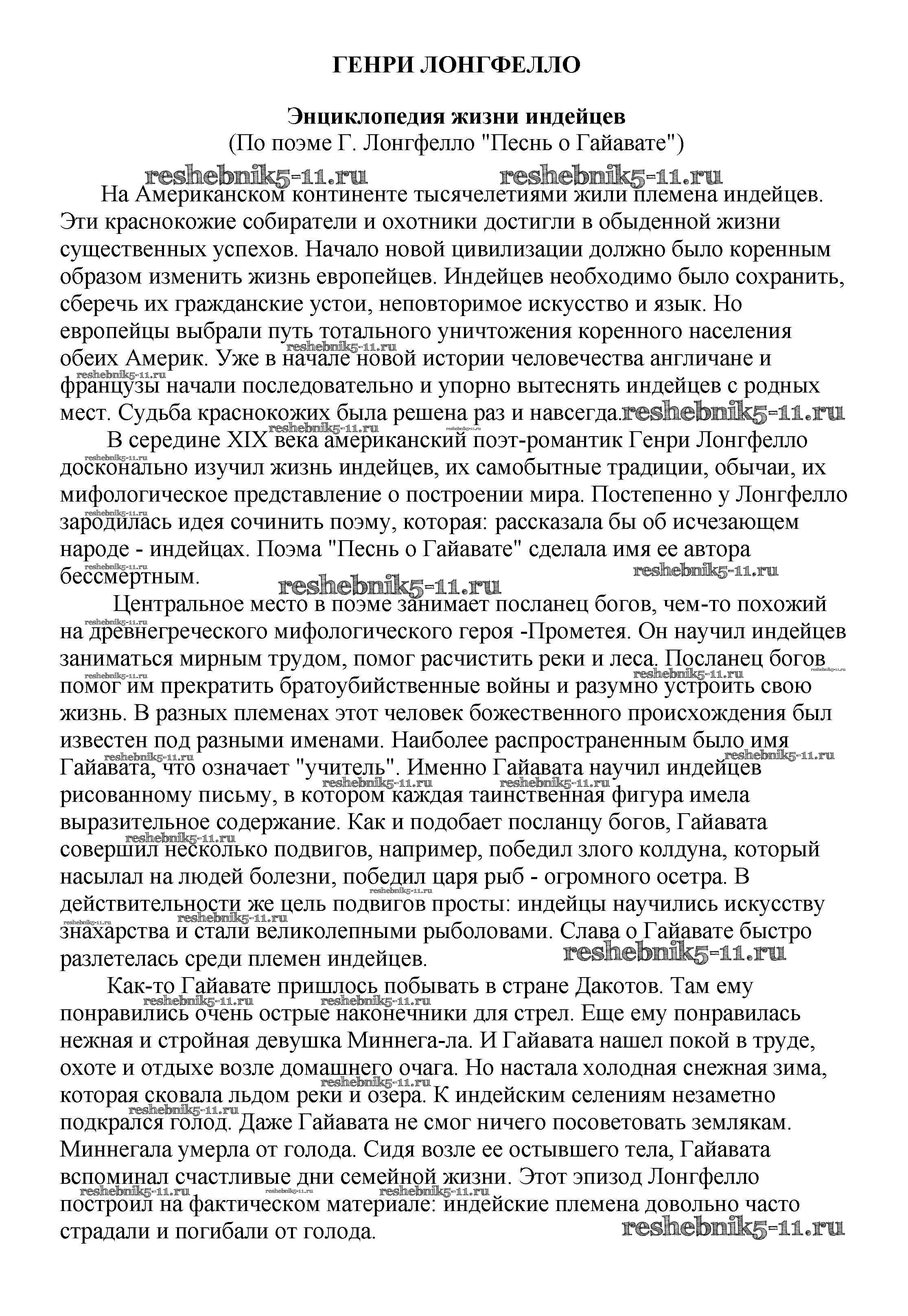 Готовая домашняя работа с ответами по Литературе за 5, 6, 7, 8, 9, 10 класс Белик, Музычук Сочинения Баро-Пресс 2017 - Сочинения по зарубежной литературе Энциклопедия жизни индейцев (По поэме Г. Лонгфелло "Песнь о Гайавате")
