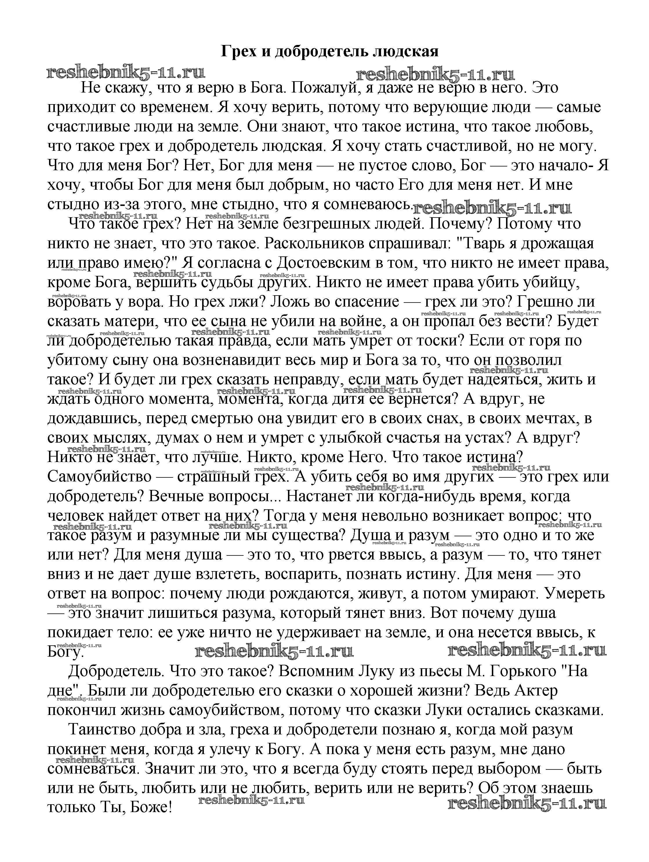 Готовая домашняя работа с ответами по Литературе за 5, 6, 7, 8, 9, 10 класс Белик, Музычук Сочинения Баро-Пресс 2017 - Сочинения на свободную тему Грех и добродетель людская