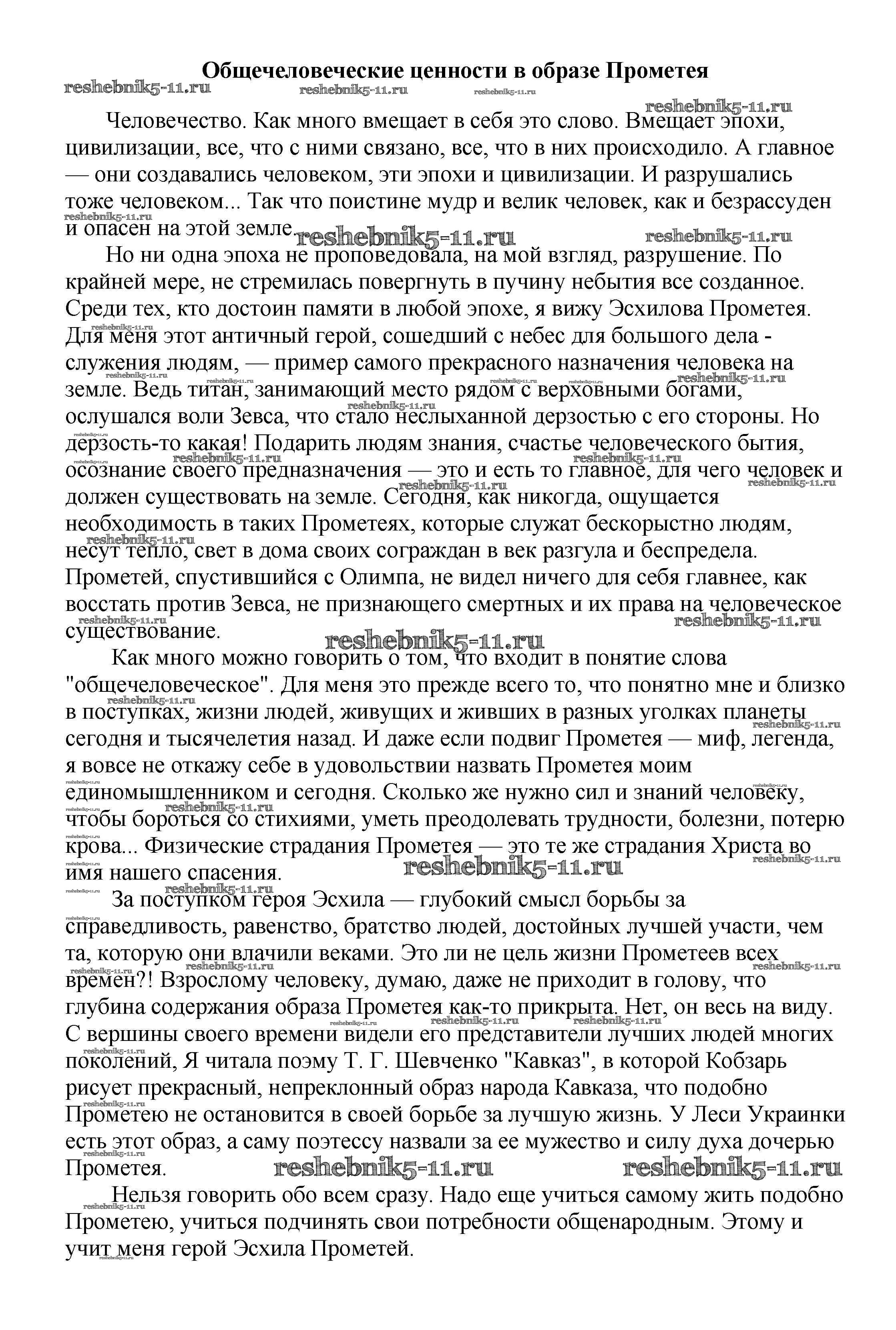 Готовая домашняя работа с ответами по Литературе за 5, 6, 7, 8, 9, 10 класс Белик, Музычук Сочинения Баро-Пресс 2017 - Сочинения на свободную тему Общечеловеческие ценности в образе Прометея