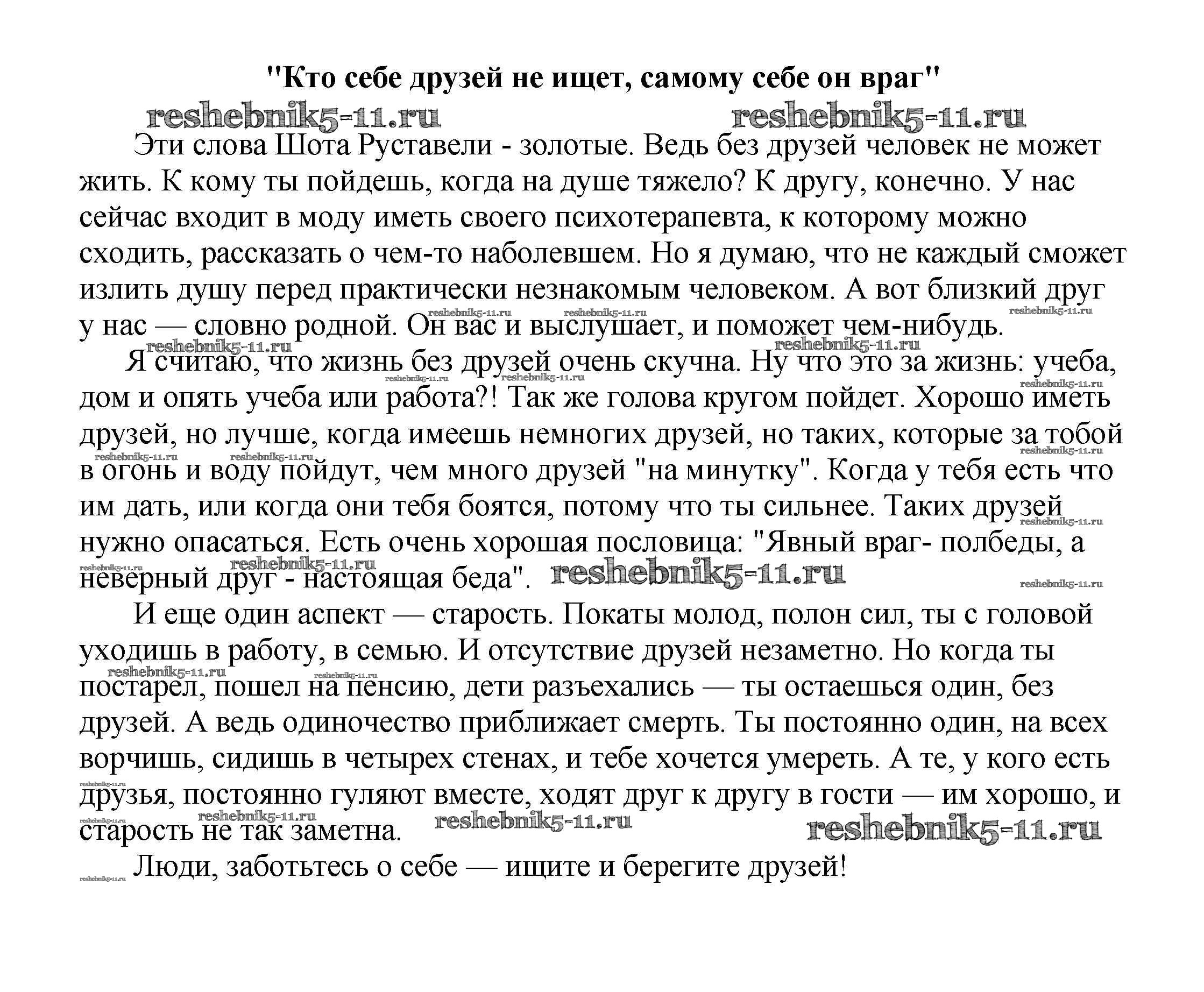 Готовая домашняя работа с ответами по Литературе за 5, 6, 7, 8, 9, 10 класс Белик, Музычук Сочинения Баро-Пресс 2017 - Сочинения на свободную тему "Кто себе друзей не ищет, самому себе он враг"