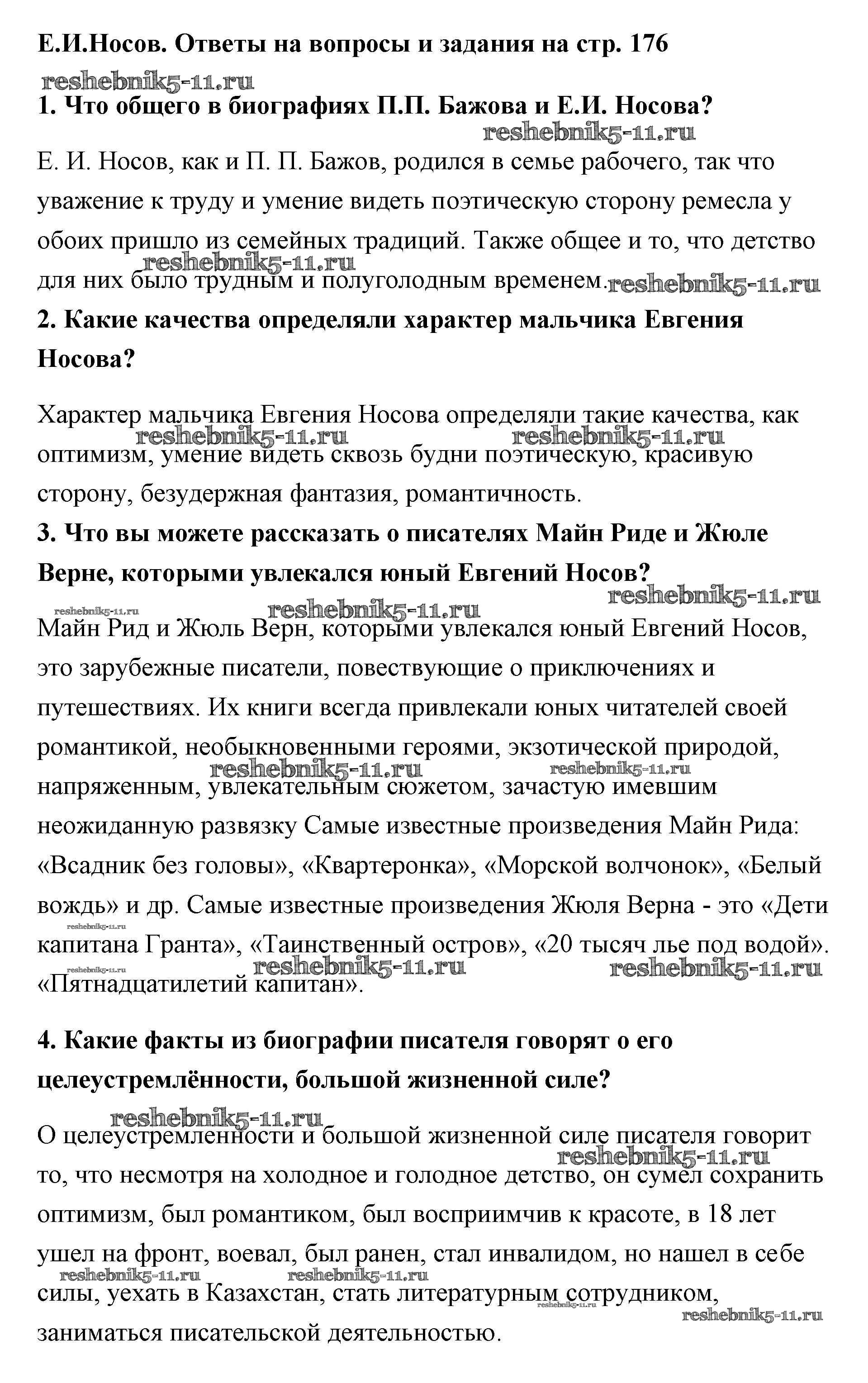 Готовая домашняя работа с ответами по Литературе за 5 класс Меркин Учебник Инновационная школа Часть 1, 2 Русское слово 2016 ФГОС - Е. И. Носов 176