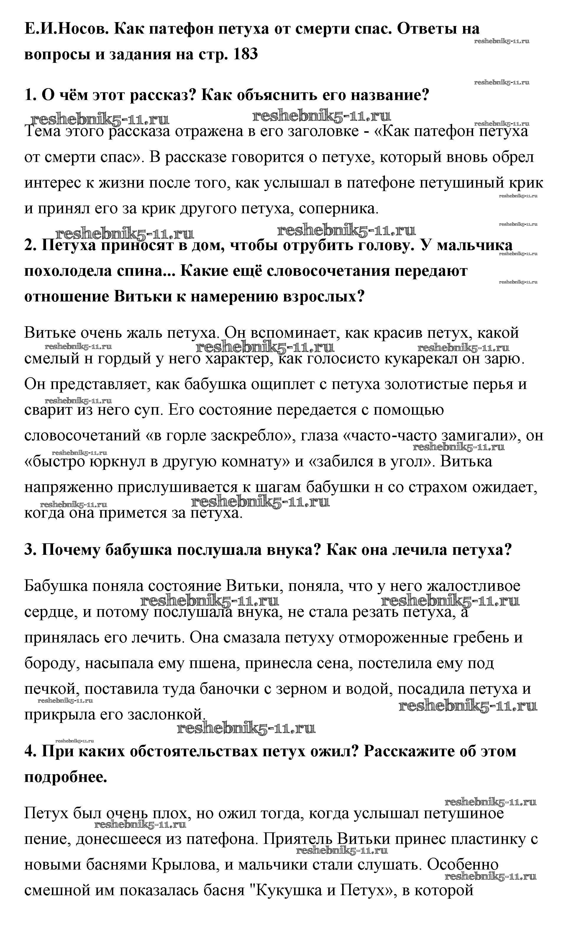 Готовая домашняя работа с ответами по Литературе за 5 класс Меркин Учебник Инновационная школа Часть 1, 2 Русское слово 2016 ФГОС - Е. И. Носов 183