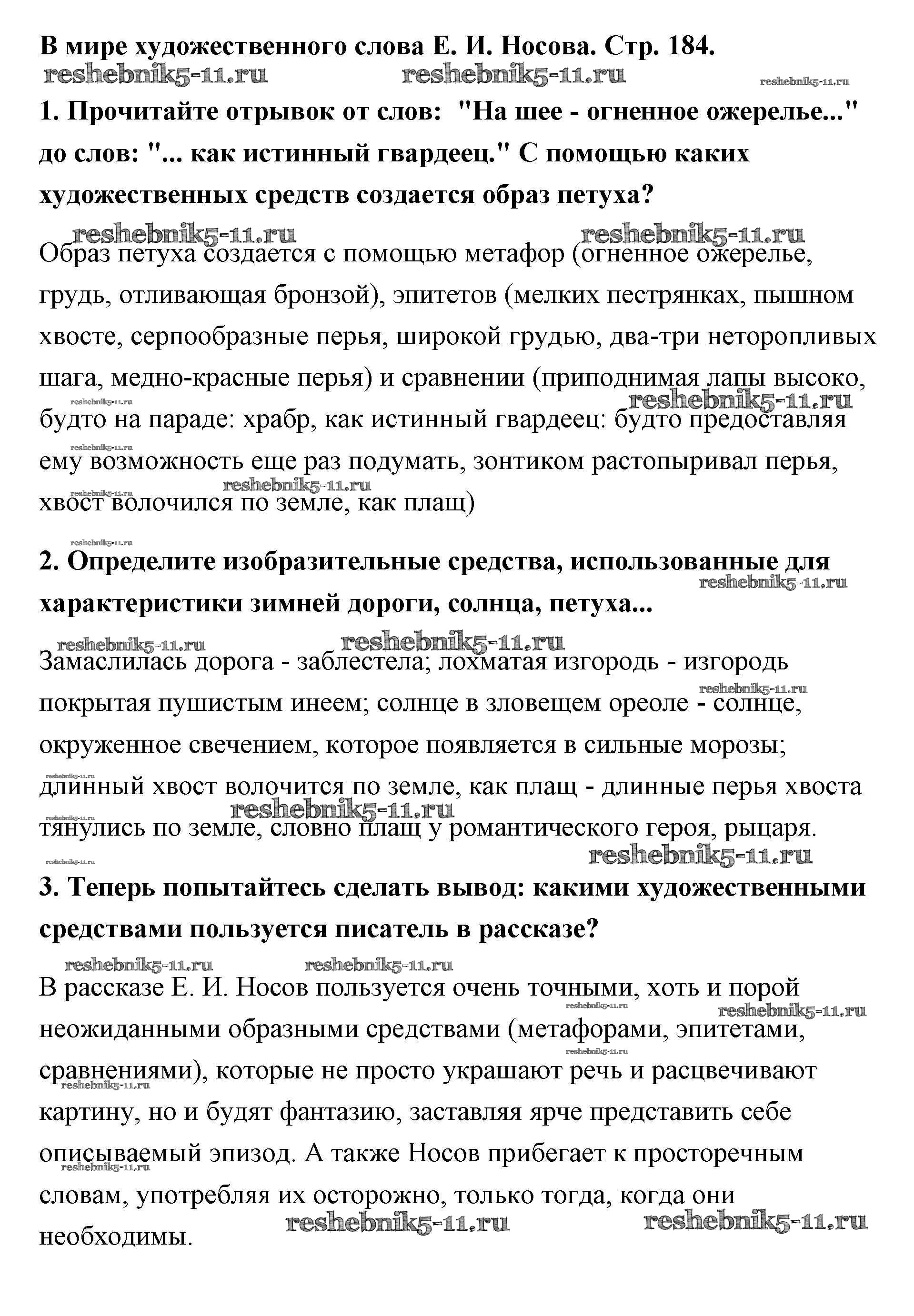 Готовая домашняя работа с ответами по Литературе за 5 класс Меркин Учебник Инновационная школа Часть 1, 2 Русское слово 2016 ФГОС - Е. И. Носов 184
