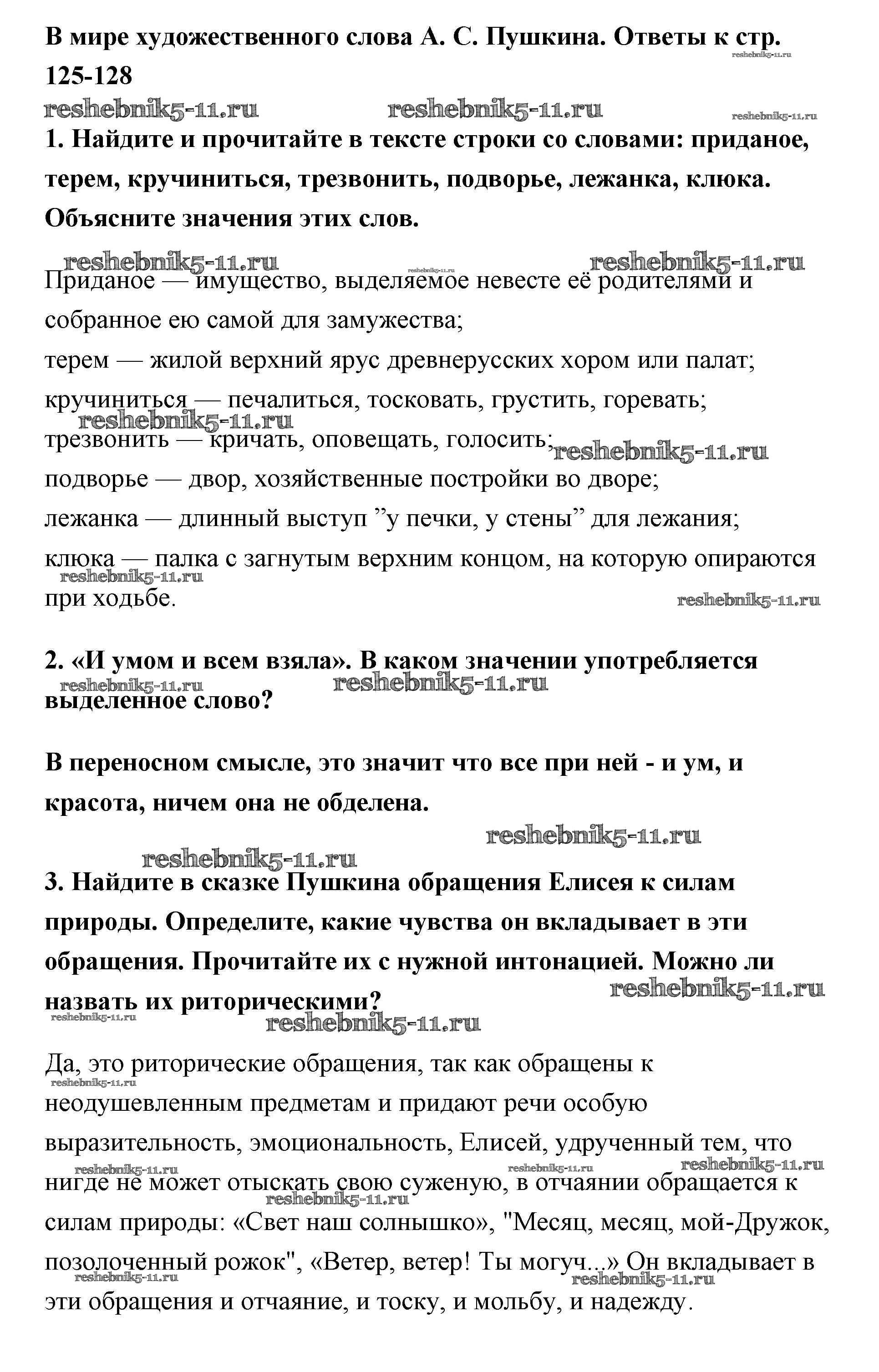 Готовая домашняя работа с ответами по Литературе за 5 класс Меркин Учебник Инновационная школа Часть 1, 2 Русское слово 2016 ФГОС - Часть 1 (Страницы) 125-128