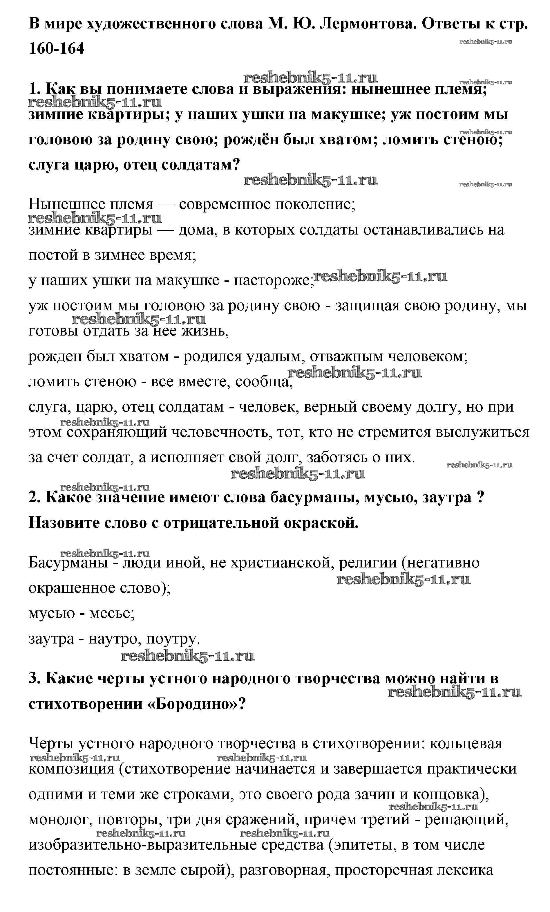 Готовая домашняя работа с ответами по Литературе за 5 класс Меркин Учебник Инновационная школа Часть 1, 2 Русское слово 2016 ФГОС - Часть 1 (Страницы) 160-164