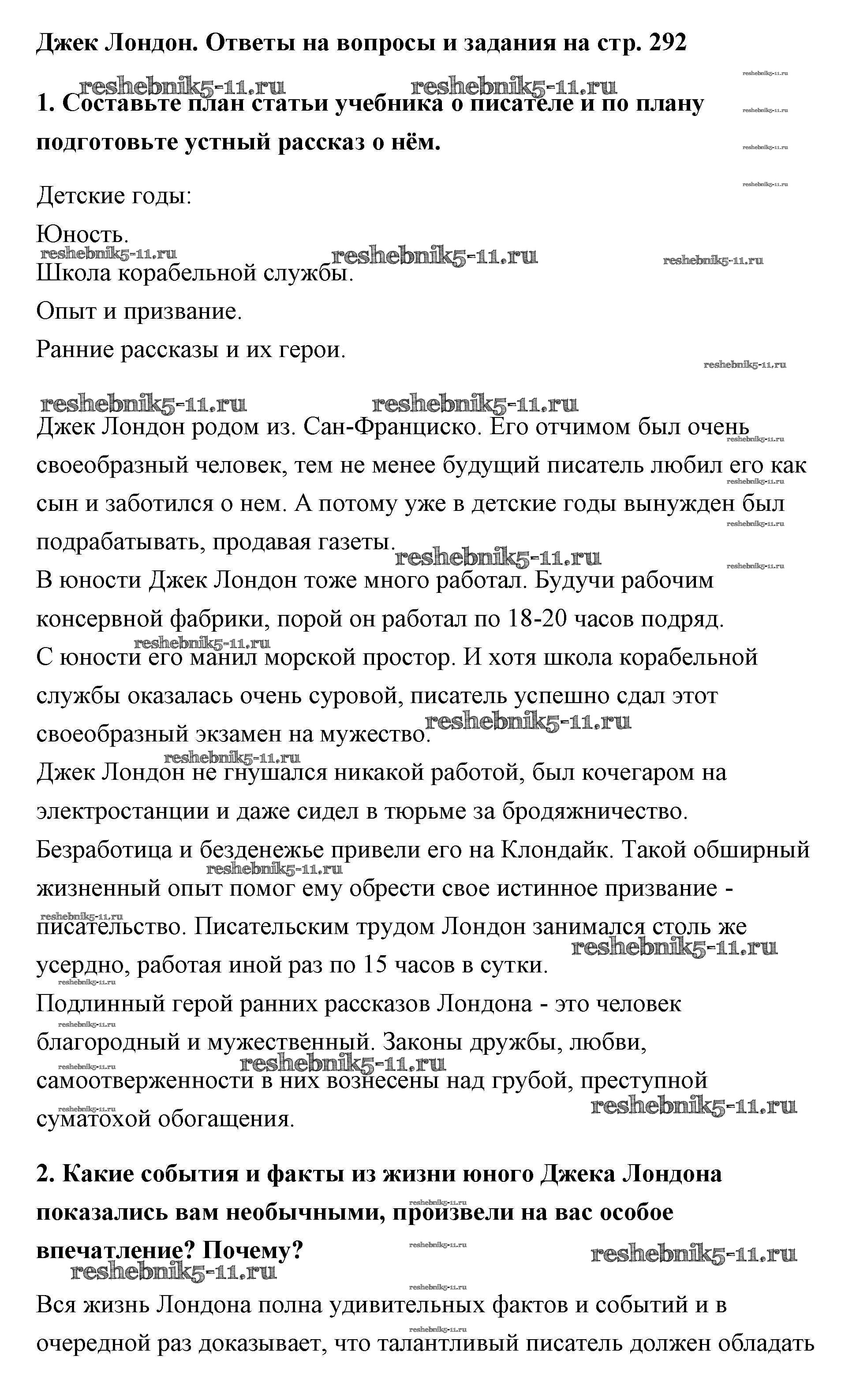 Решебник №1 / часть 2 (страница) / Джек Лондон / 292