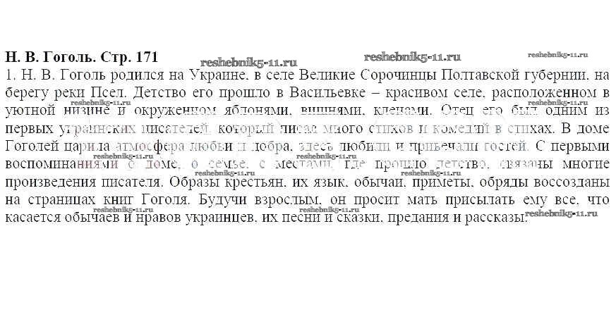 Готовая домашняя работа с ответами по Литературе за 5 класс Меркин Учебник Инновационная школа Часть 1, 2 Русское слово 2016 ФГОС - Часть 1 (Страницы) 171