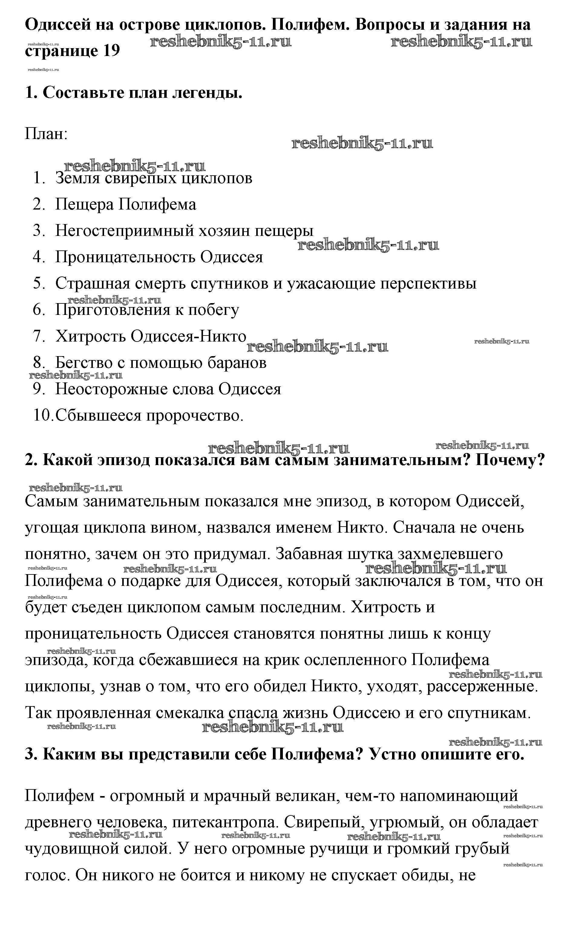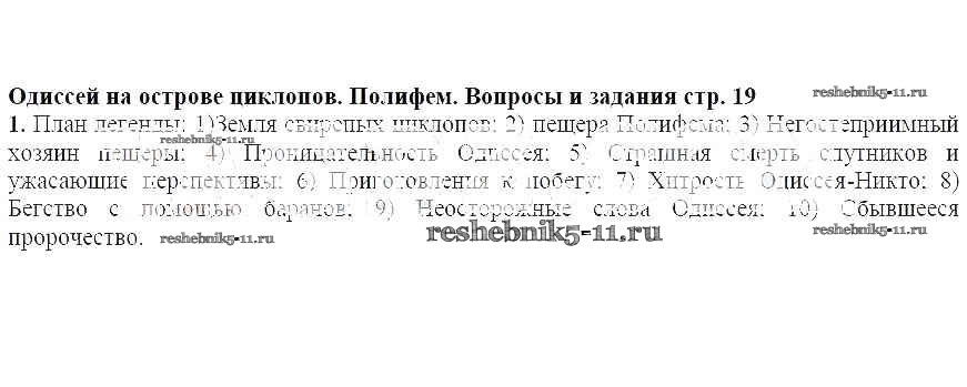 Готовая домашняя работа с ответами по Литературе за 5 класс Меркин Учебник Инновационная школа Часть 1, 2 Русское слово 2016 ФГОС - Часть 1 (Страницы) 19