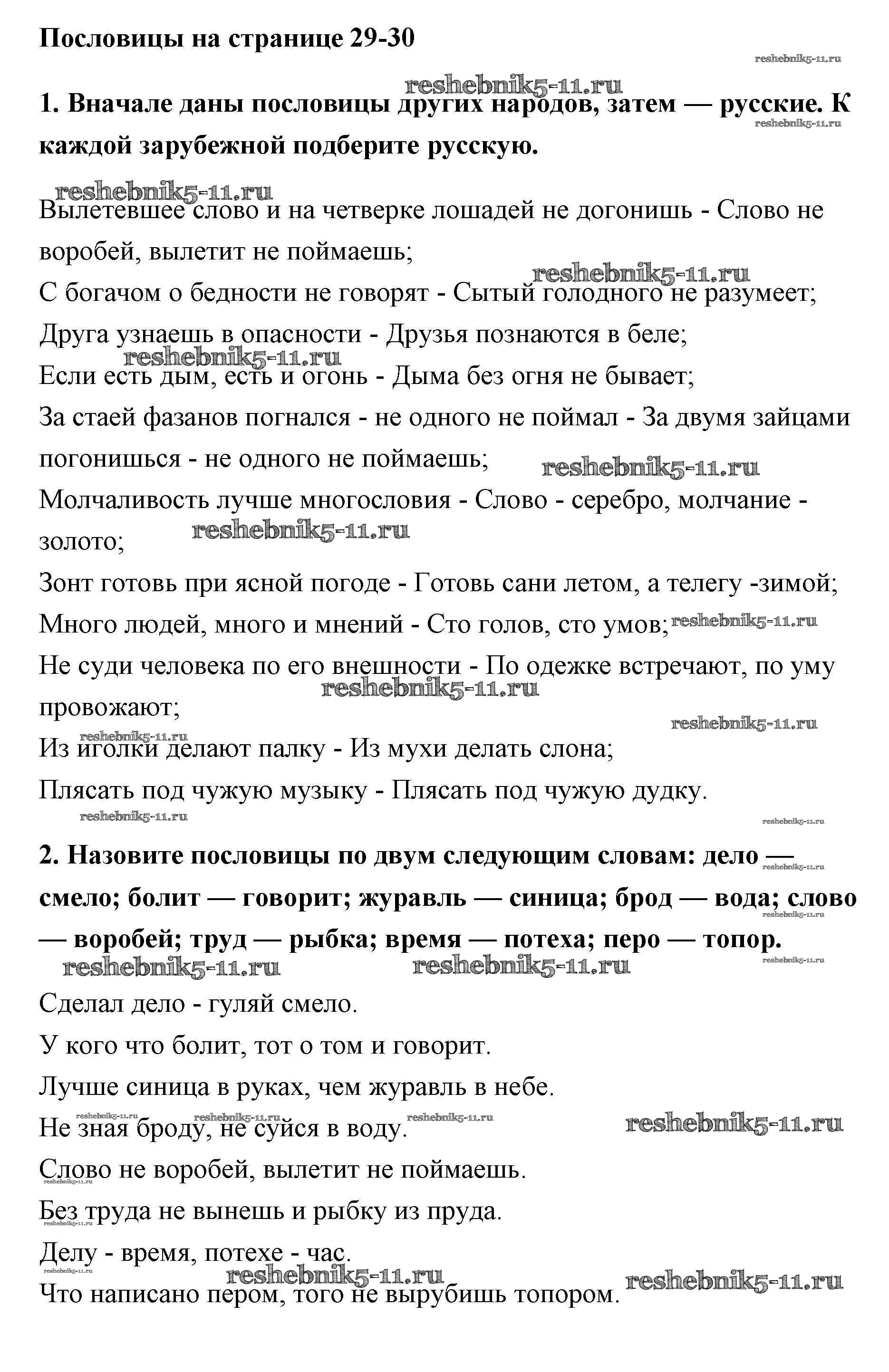 Готовая домашняя работа с ответами по Литературе за 5 класс Меркин Учебник Инновационная школа Часть 1, 2 Русское слово 2016 ФГОС - Часть 1 (Страницы) 29-30