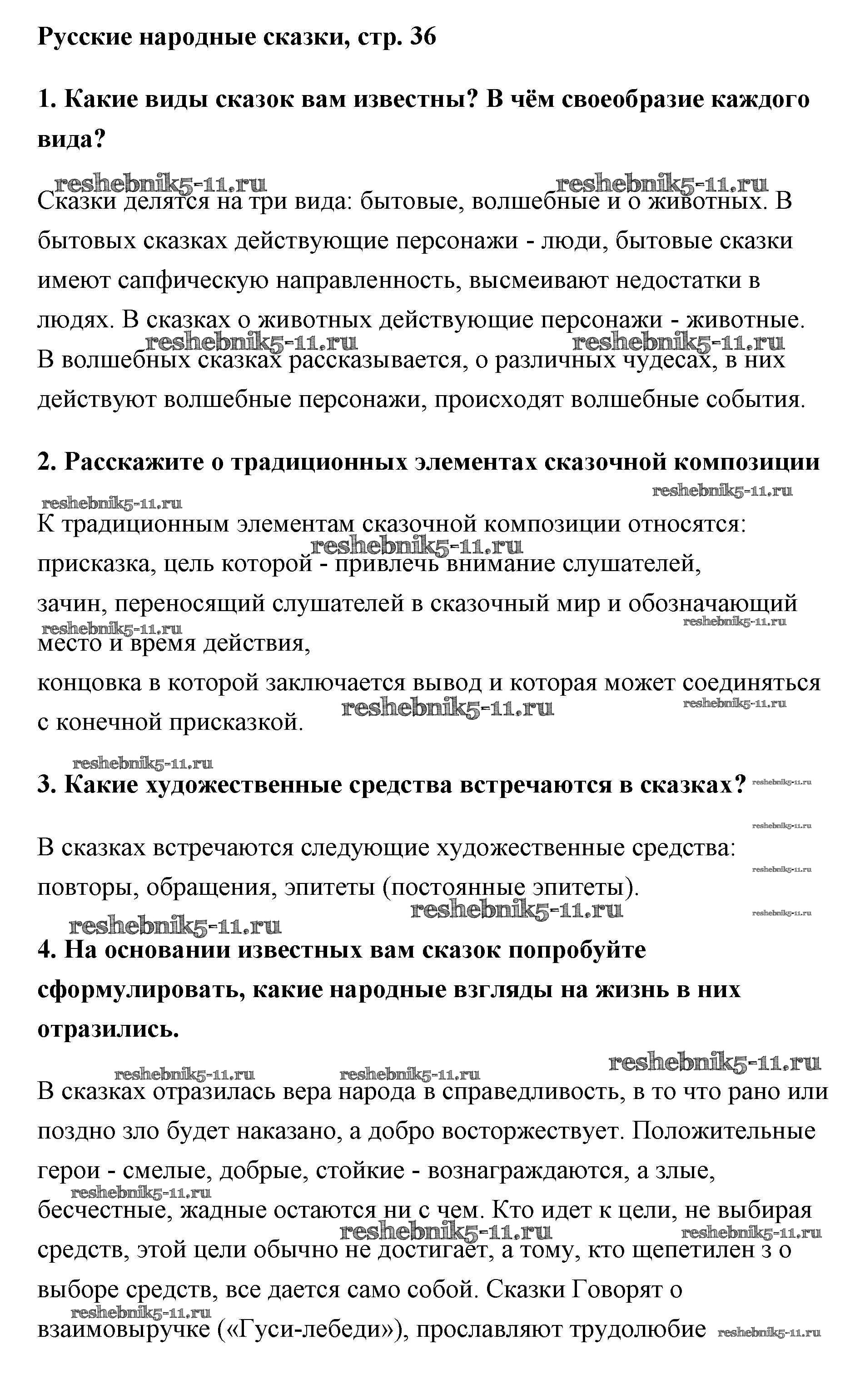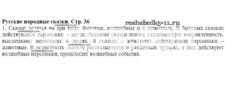 Готовая домашняя работа с ответами по Литературе за 5 класс Меркин Учебник Инновационная школа Часть 1, 2 Русское слово 2016 ФГОС - Часть 1 (Страницы) 36