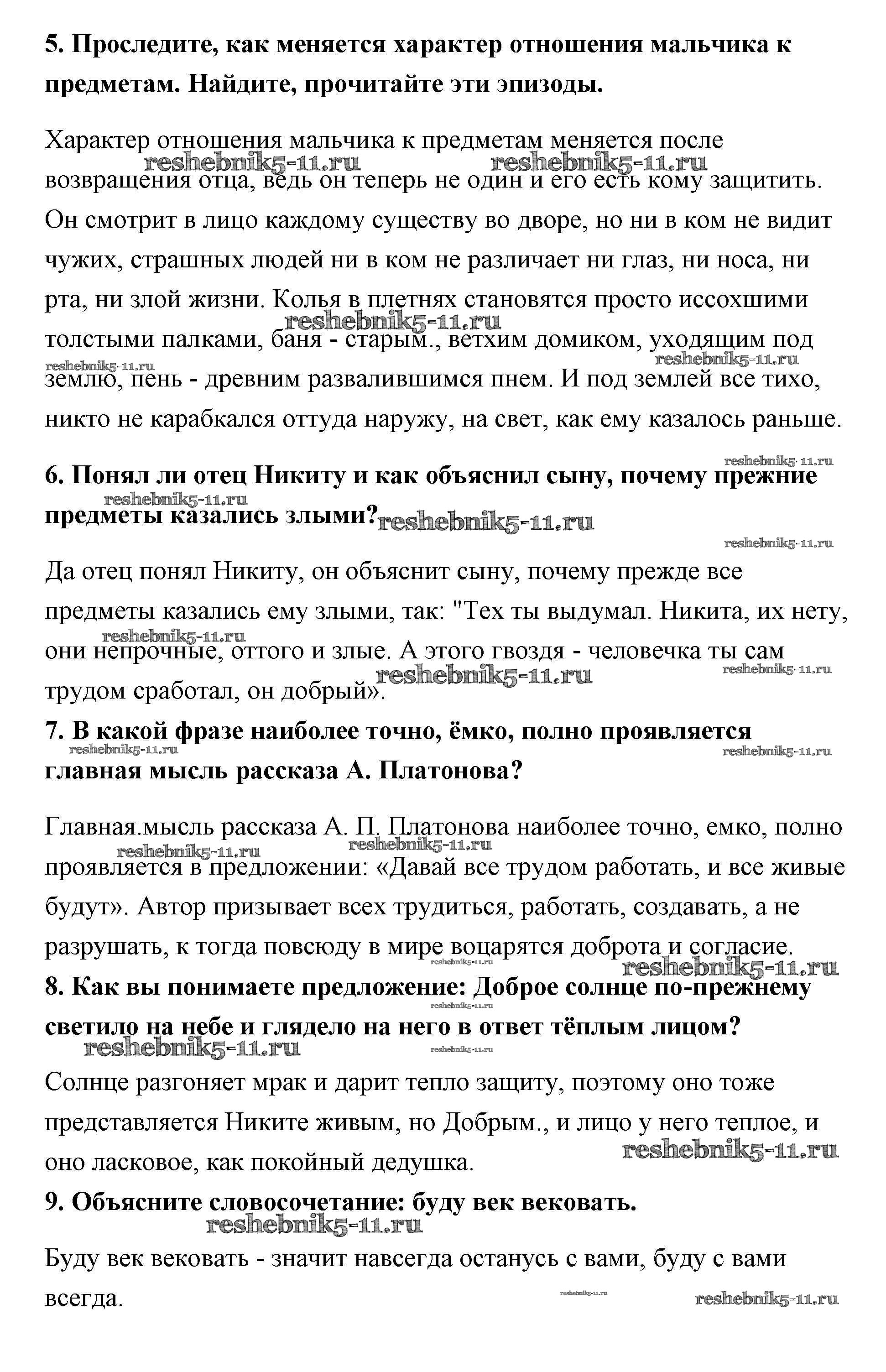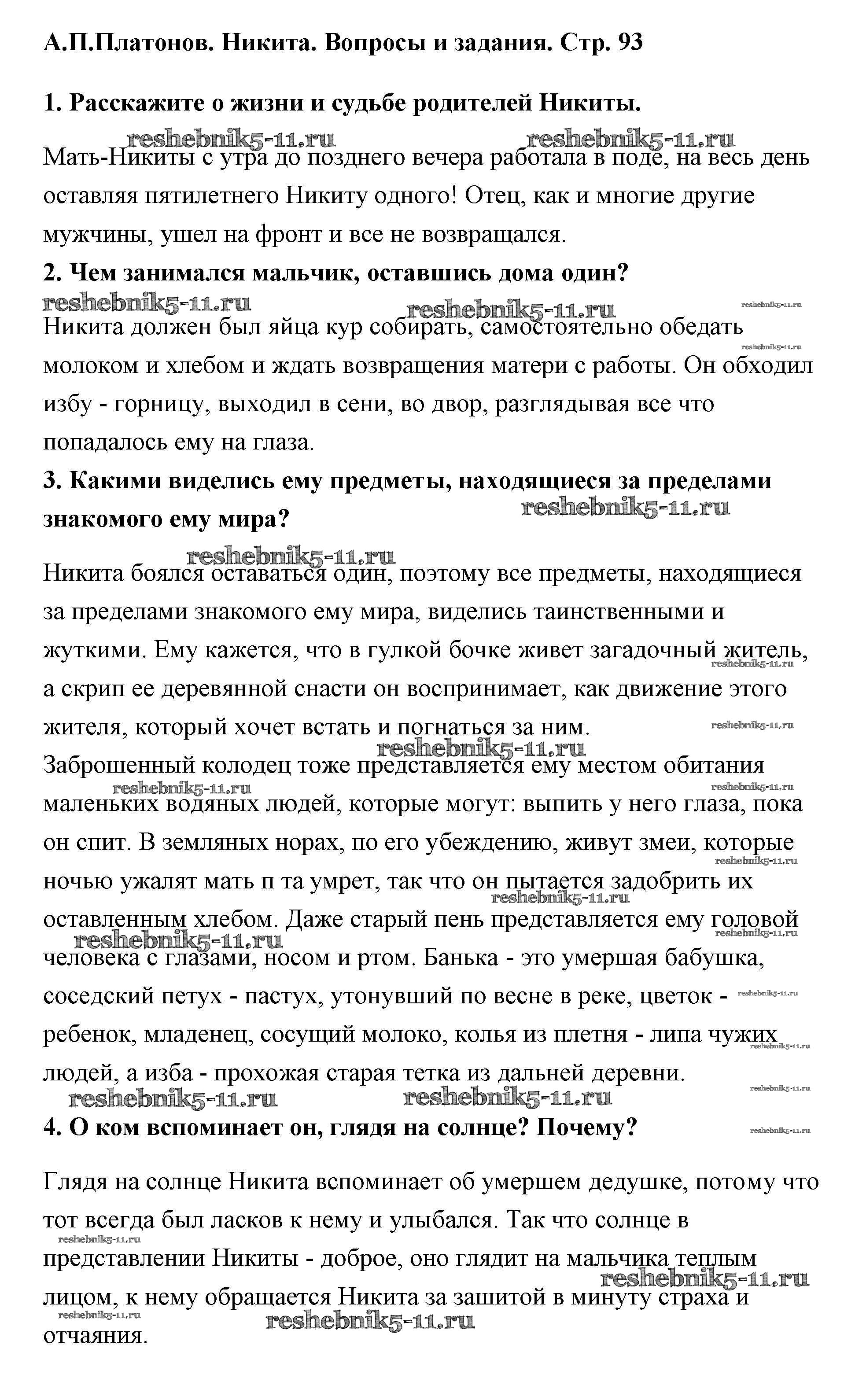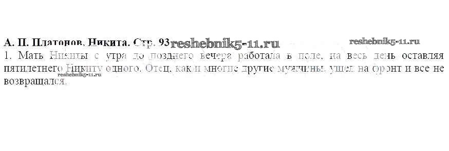 Готовая домашняя работа с ответами по Литературе за 5 класс Меркин Учебник Инновационная школа Часть 1, 2 Русское слово 2016 ФГОС - А. П. Платонов 93