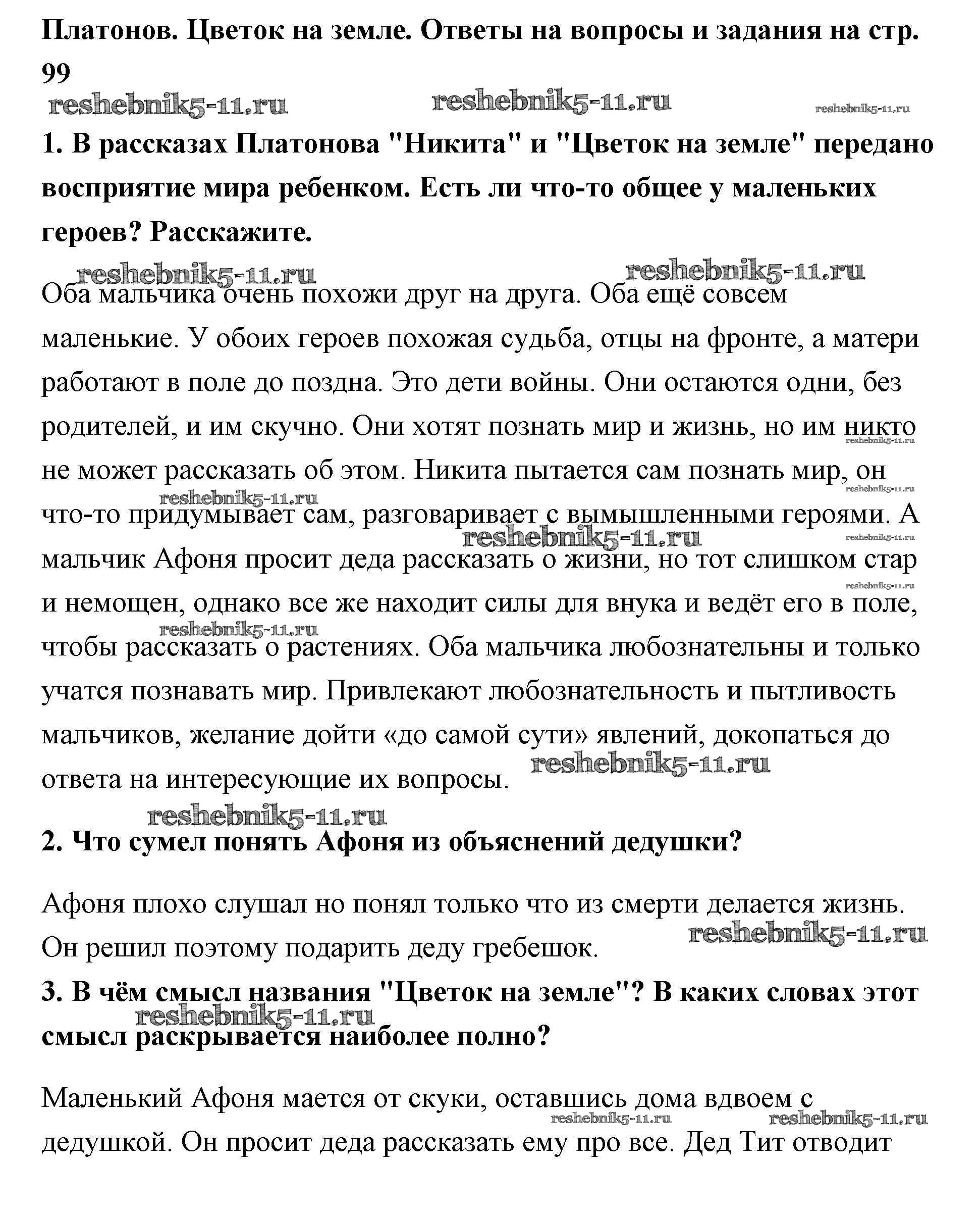 Готовая домашняя работа с ответами по Литературе за 5 класс Меркин Учебник Инновационная школа Часть 1, 2 Русское слово 2016 ФГОС - А. П. Платонов 99