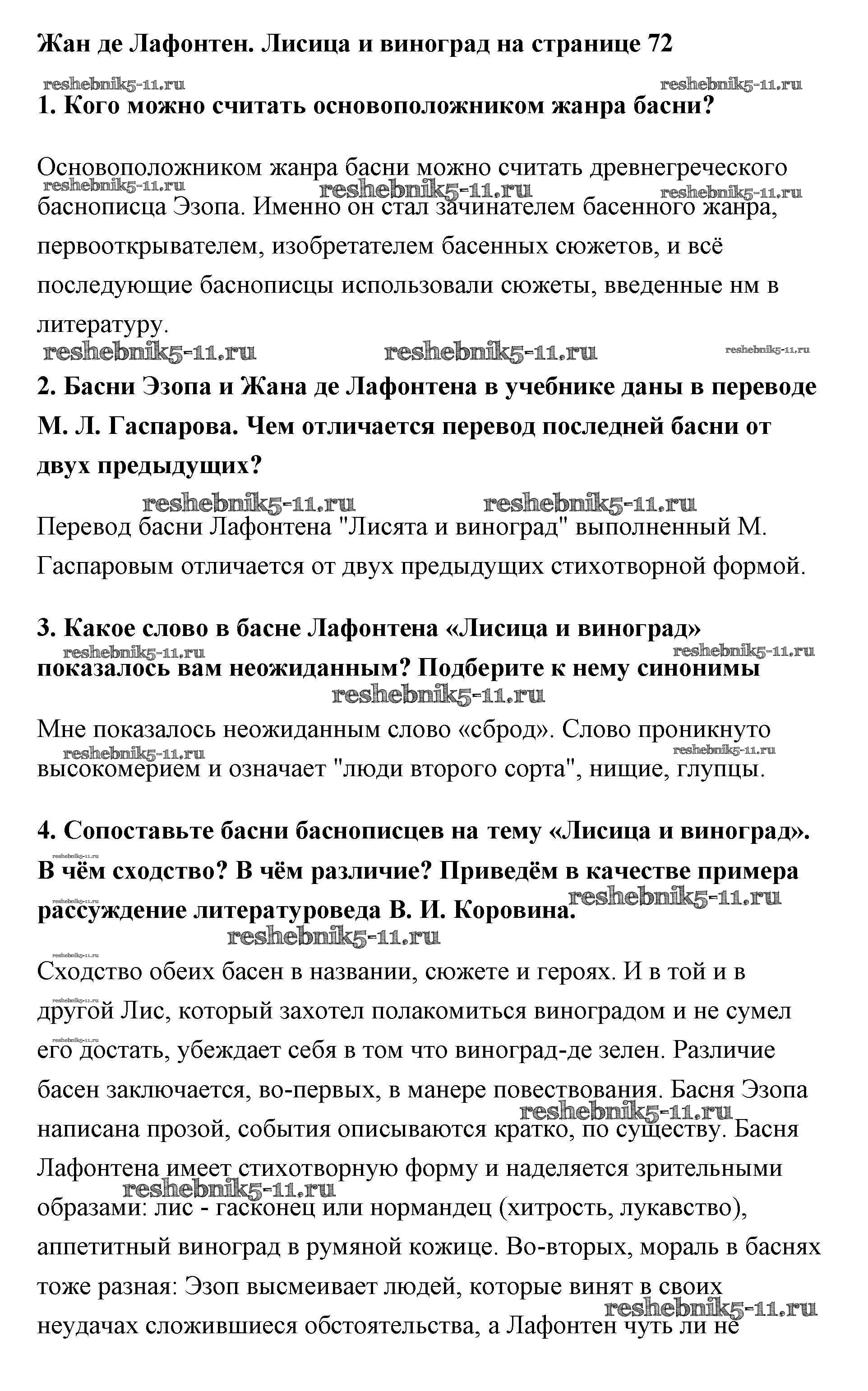 Готовая домашняя работа с ответами по Литературе за 5 класс Меркин Учебник Инновационная школа Часть 1, 2 Русское слово 2016 ФГОС - Часть 1 (Страницы) 72