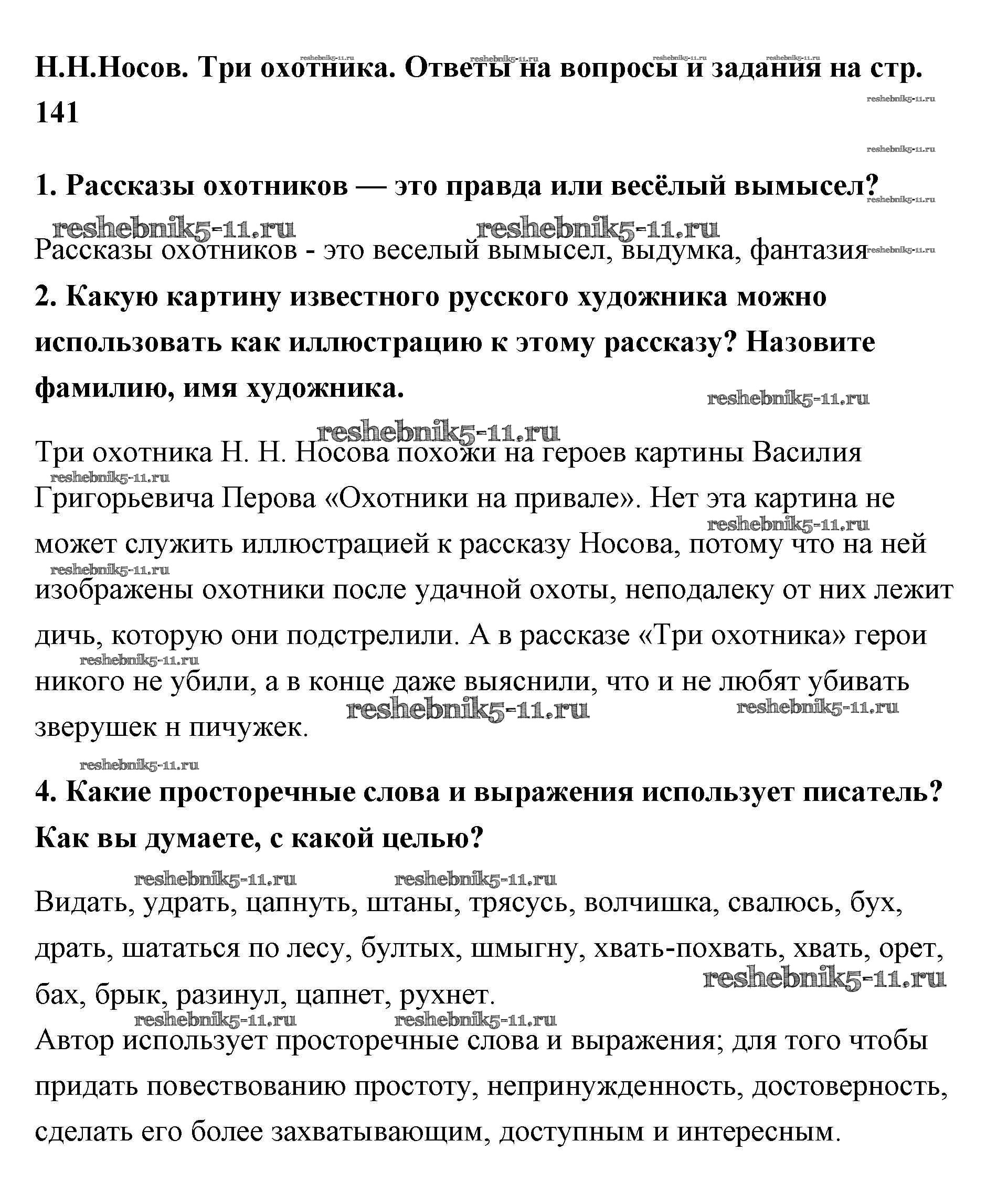 Готовая домашняя работа с ответами по Литературе за 5 класс Меркин Учебник Инновационная школа Часть 1, 2 Русское слово 2016 ФГОС - Н. Н. Носов 141