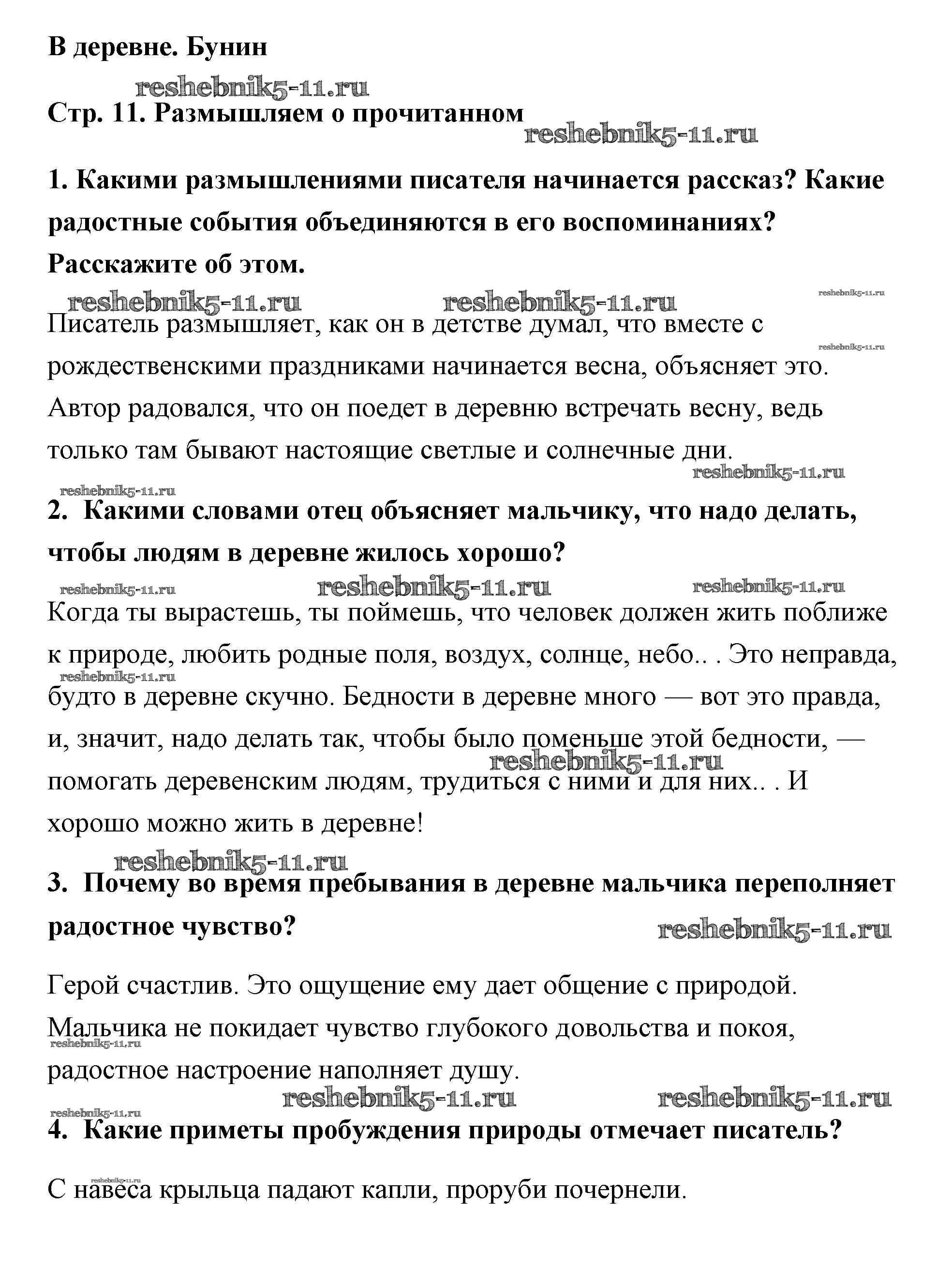 Готовая домашняя работа с ответами по Литературе за 5 класс Коровина, Коровин, Журавлев Учебник Часть 1, 2 Просвещение 2016 ФГОС - Бунин (Страницы) 11