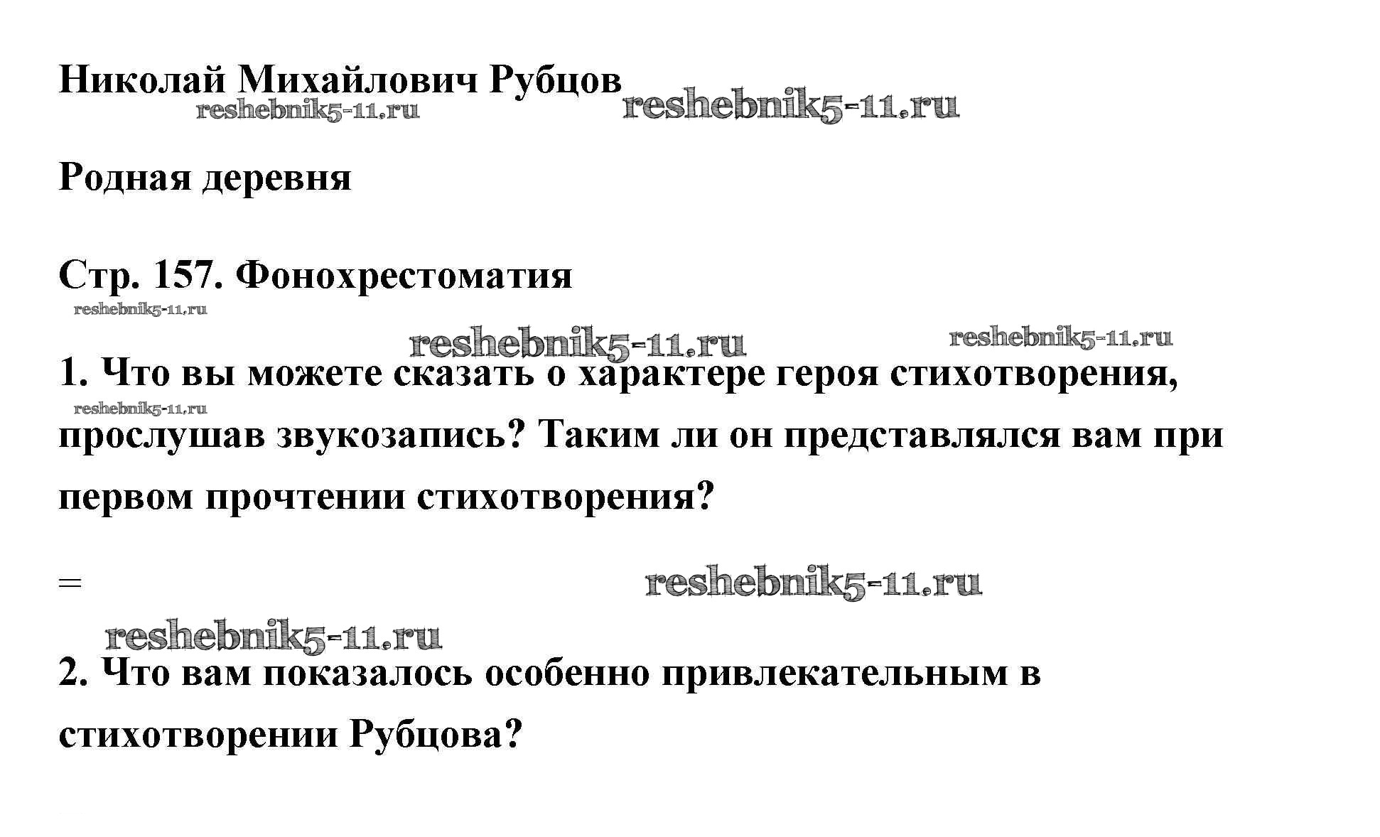Готовая домашняя работа с ответами по Литературе за 5 класс Коровина, Коровин, Журавлев Учебник Часть 1, 2 Просвещение 2016 ФГОС - Рубцов (Страницы) 157