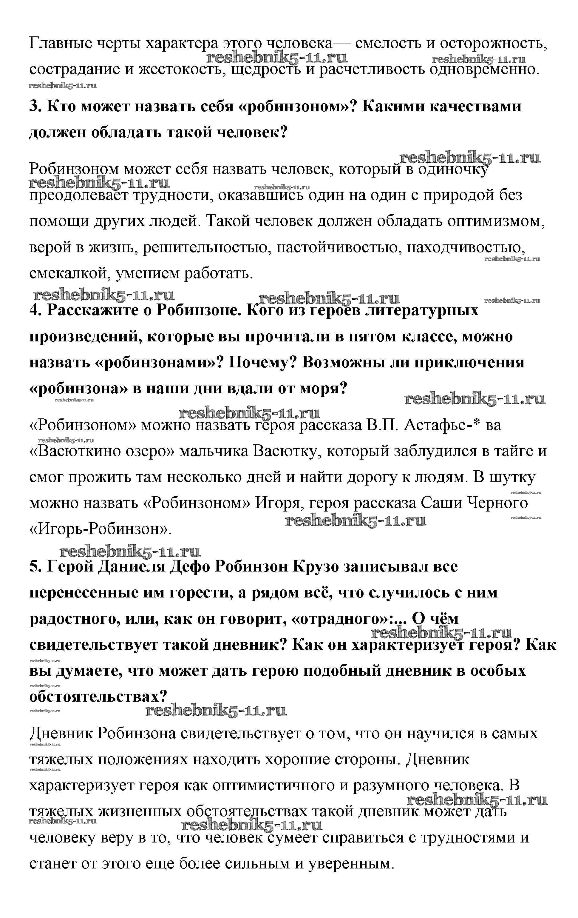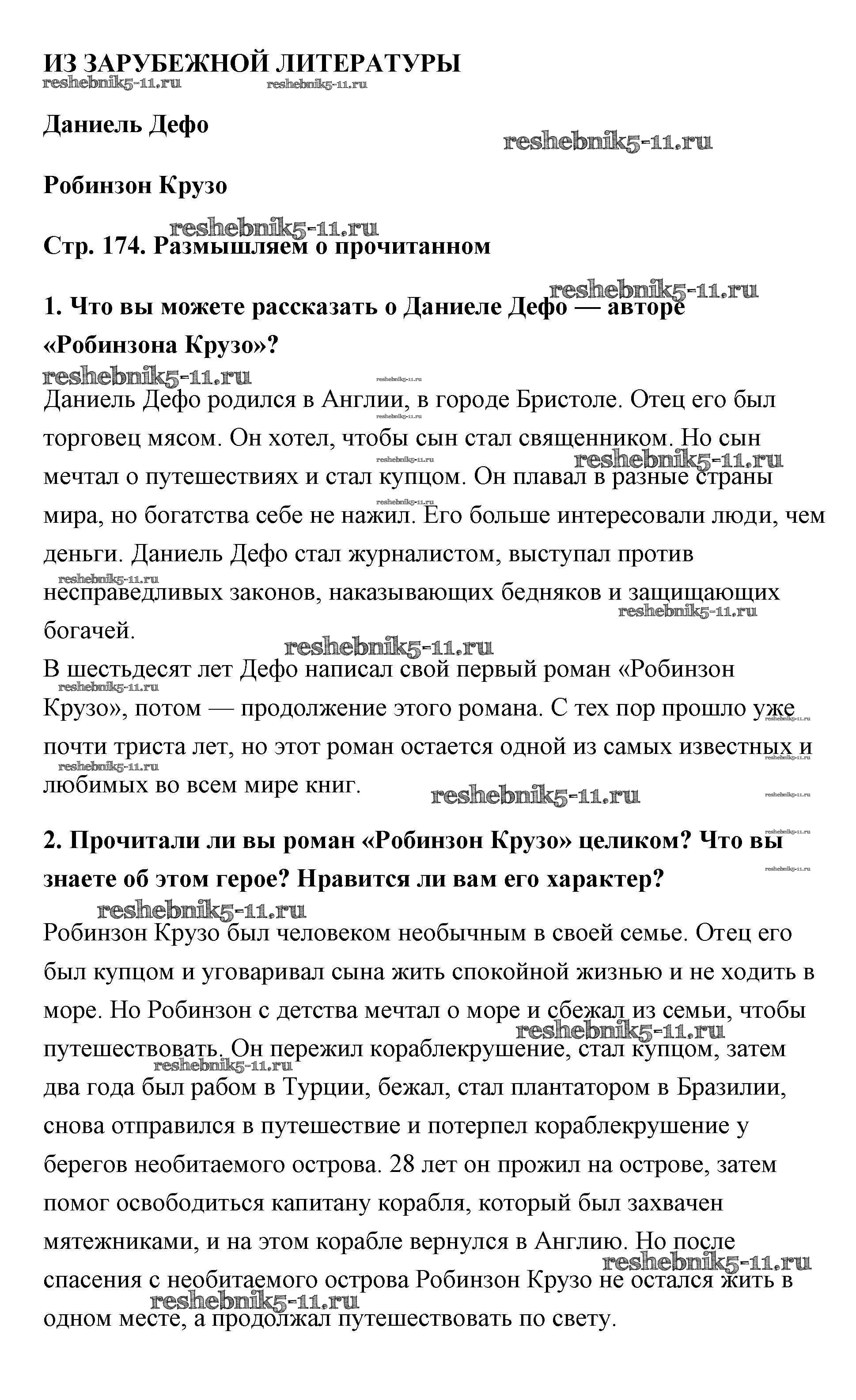 Готовая домашняя работа с ответами по Литературе за 5 класс Коровина, Коровин, Журавлев Учебник Часть 1, 2 Просвещение 2016 ФГОС - Дефо (Страницы) 174