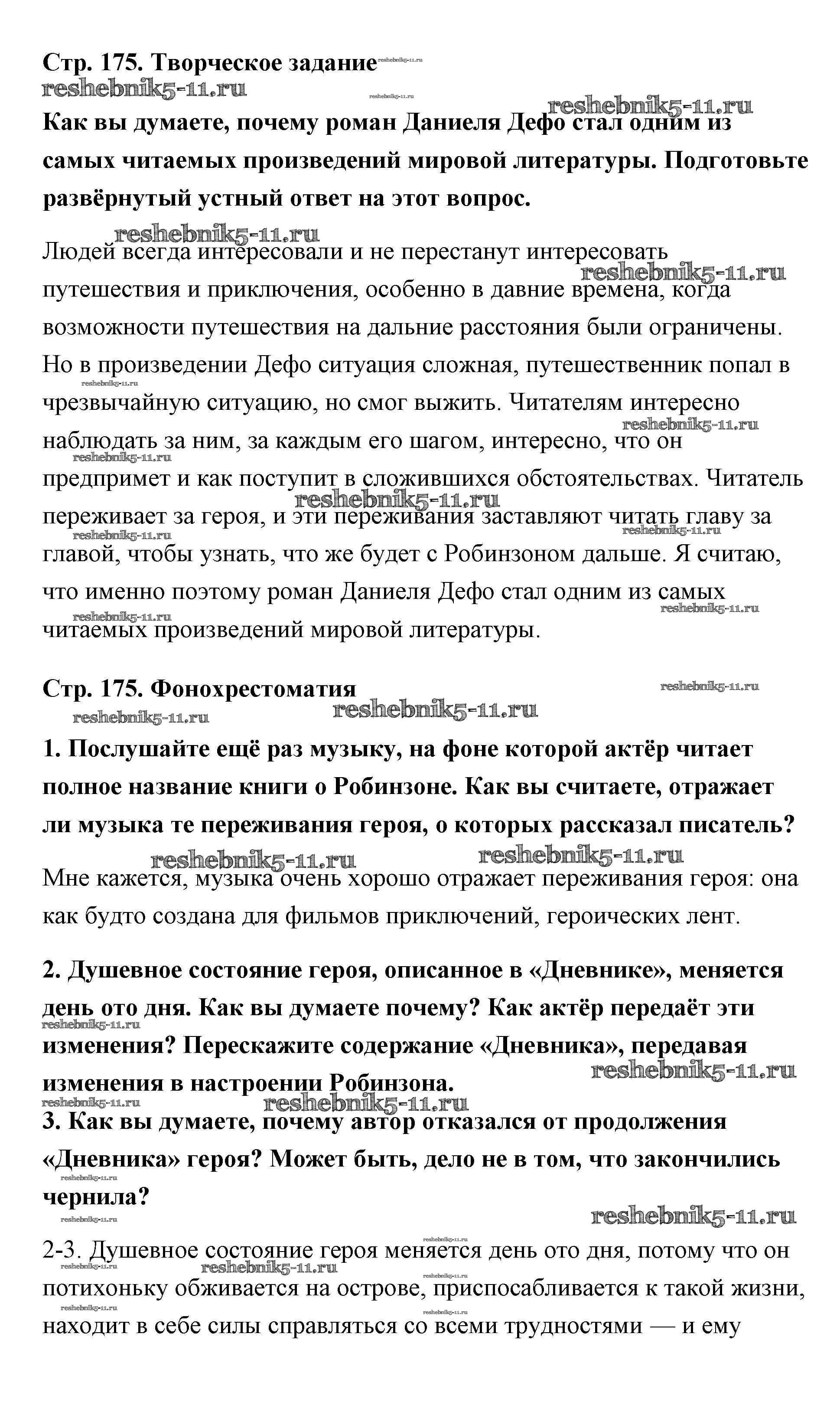 Готовая домашняя работа с ответами по Литературе за 5 класс Коровина, Коровин, Журавлев Учебник Часть 1, 2 Просвещение 2016 ФГОС - Дефо (Страницы) 175