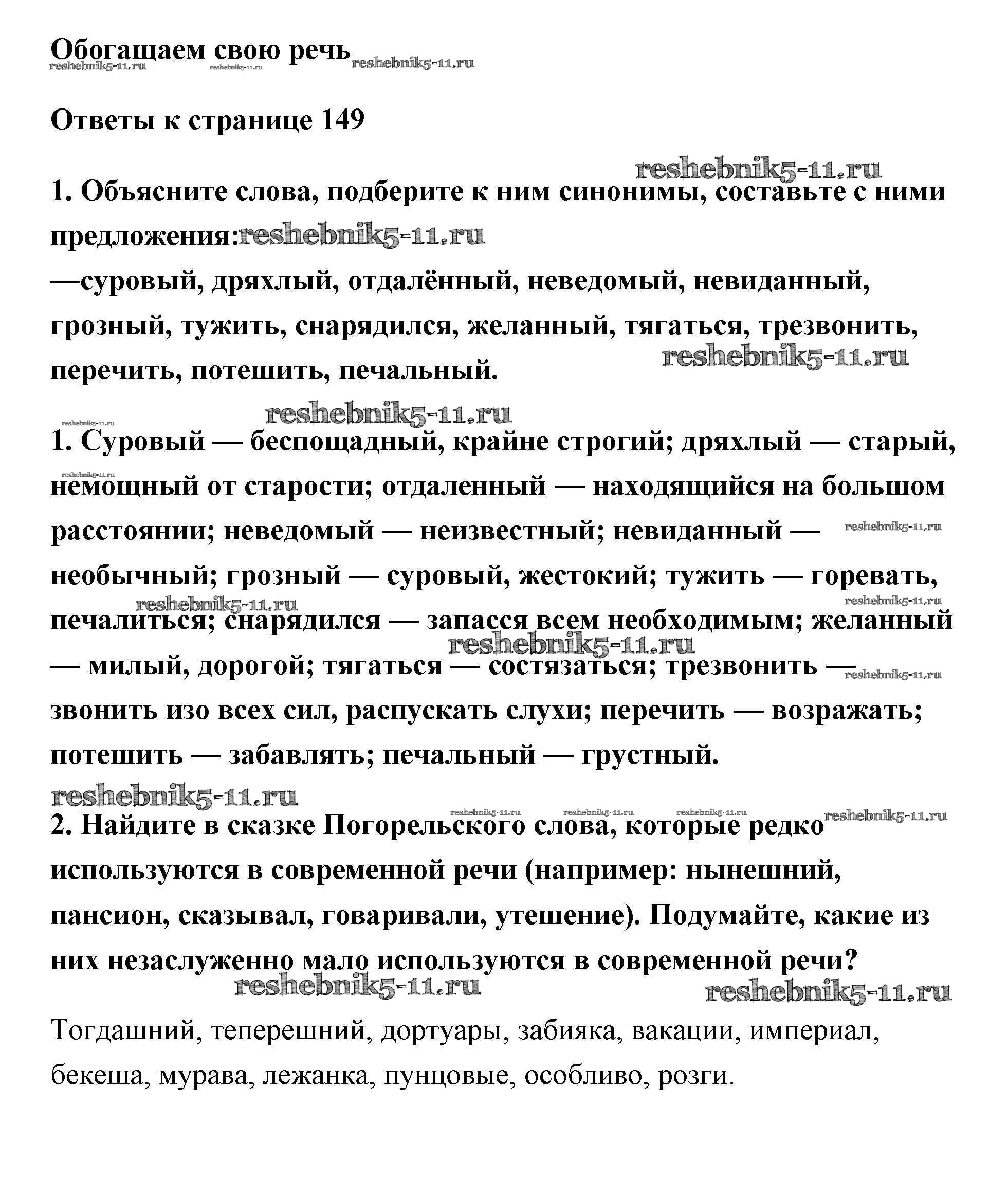 Готовая домашняя работа с ответами по Литературе за 5 класс Коровина, Коровин, Журавлев Учебник Часть 1, 2 Просвещение 2016 ФГОС - Часть 1 (Страницы) 149