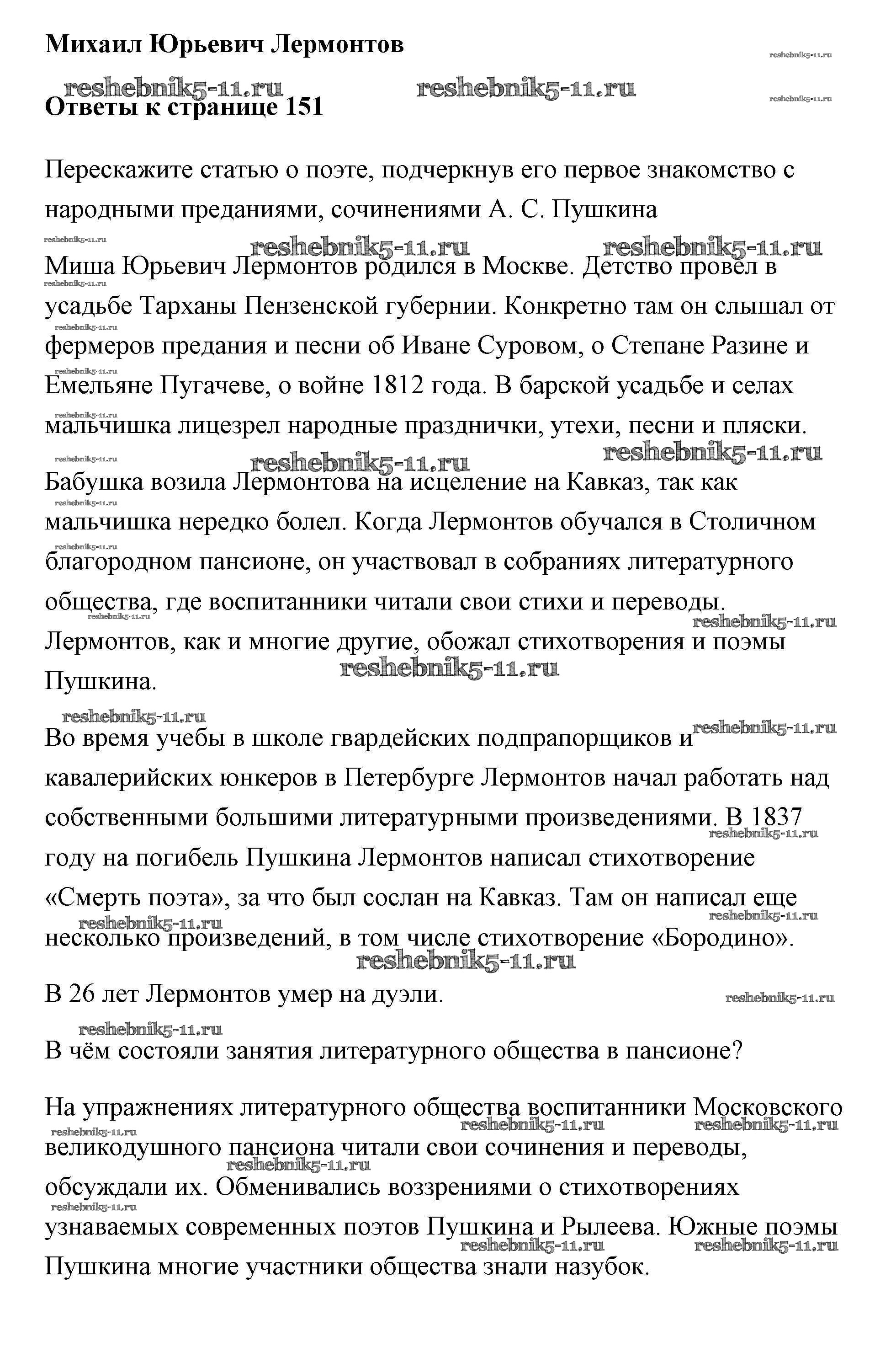 Готовая домашняя работа с ответами по Литературе за 5 класс Коровина, Коровин, Журавлев Учебник Часть 1, 2 Просвещение 2016 ФГОС - Часть 1 (Страницы) 151
