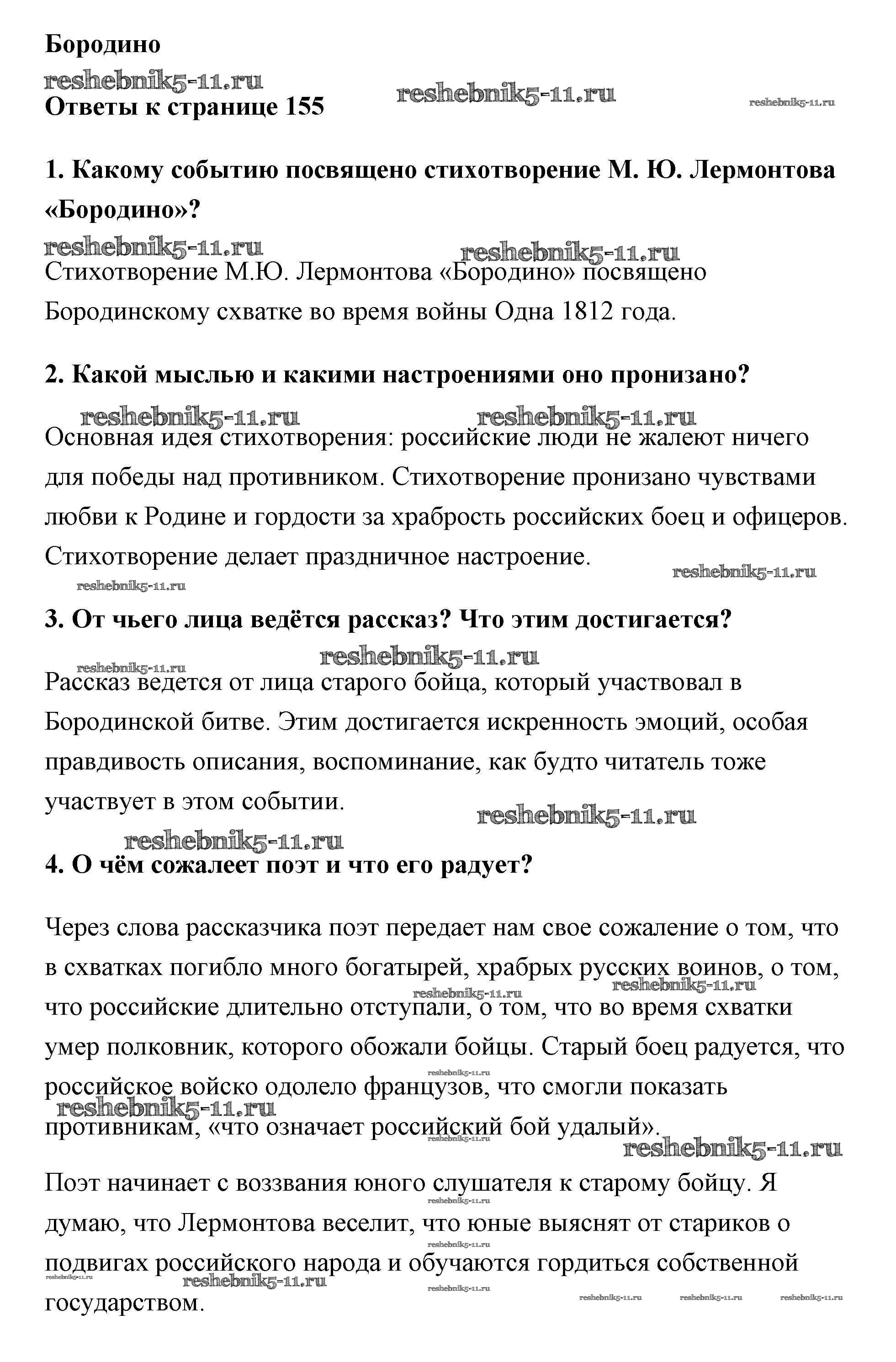Готовая домашняя работа с ответами по Литературе за 5 класс Коровина, Коровин, Журавлев Учебник Часть 1, 2 Просвещение 2016 ФГОС - Часть 1 (Страницы) 155