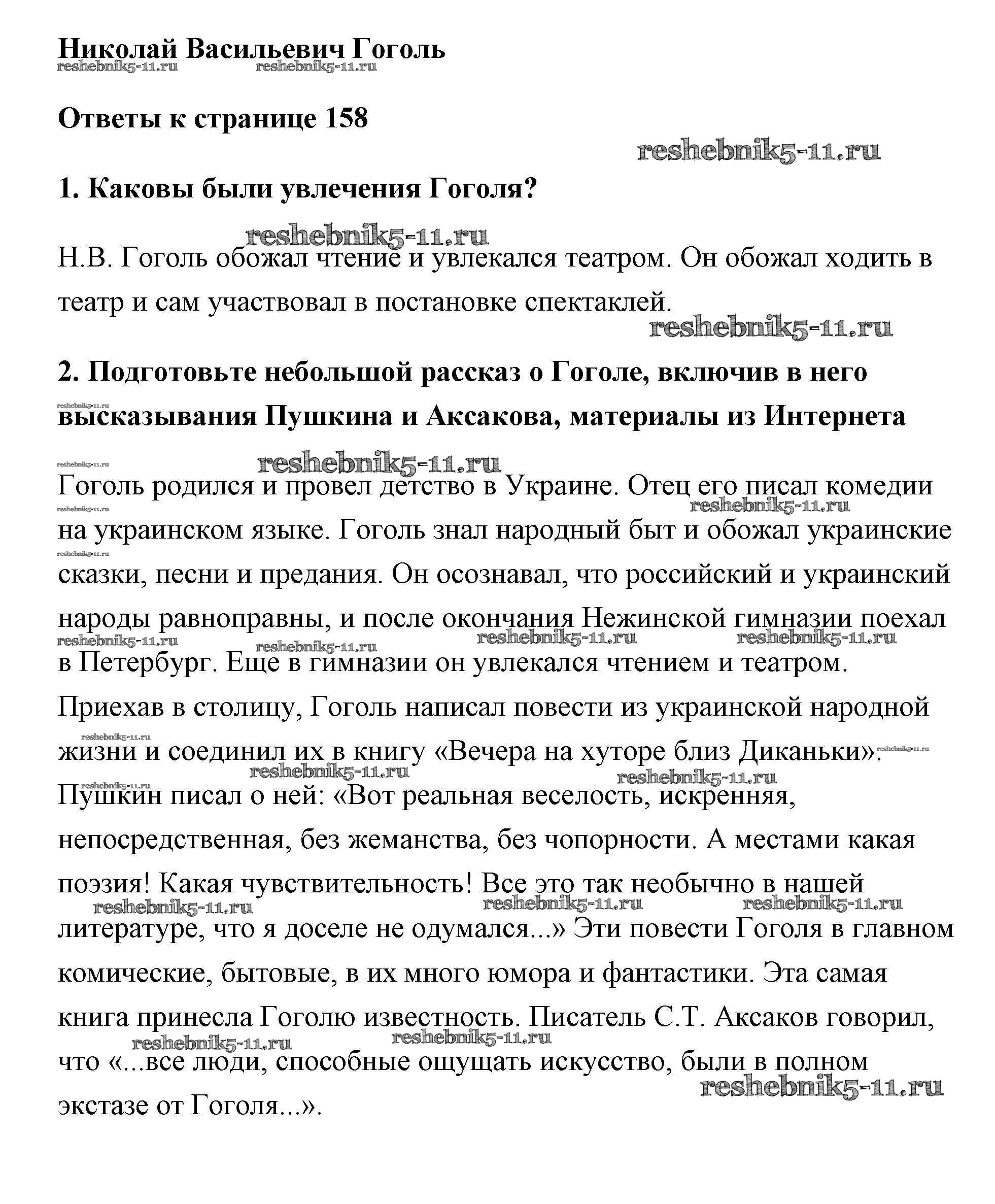 Готовая домашняя работа с ответами по Литературе за 5 класс Коровина, Коровин, Журавлев Учебник Часть 1, 2 Просвещение 2016 ФГОС - Часть 1 (Страницы) 158