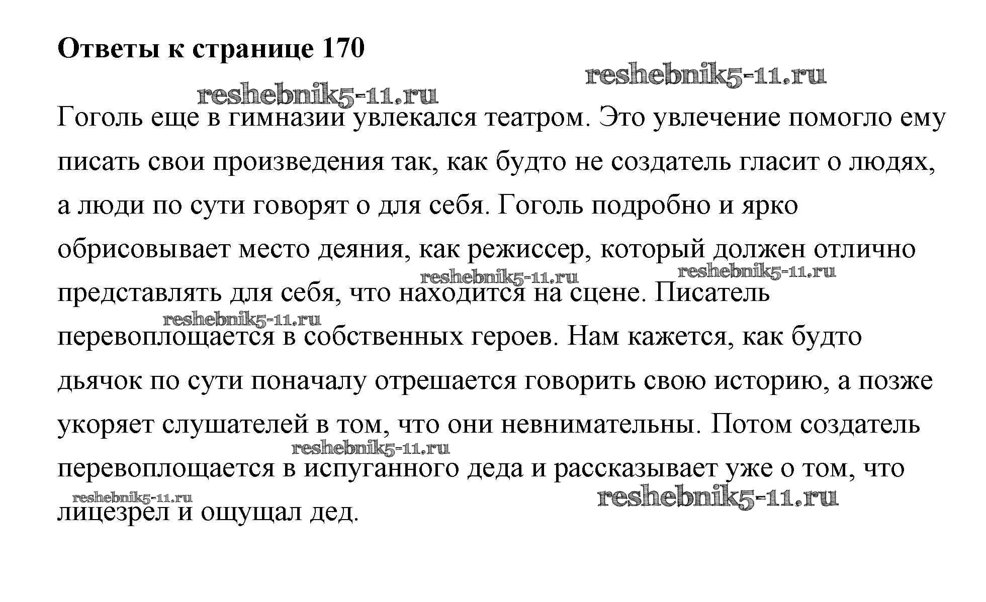 Готовая домашняя работа с ответами по Литературе за 5 класс Коровина, Коровин, Журавлев Учебник Часть 1, 2 Просвещение 2016 ФГОС - Часть 1 (Страницы) 170