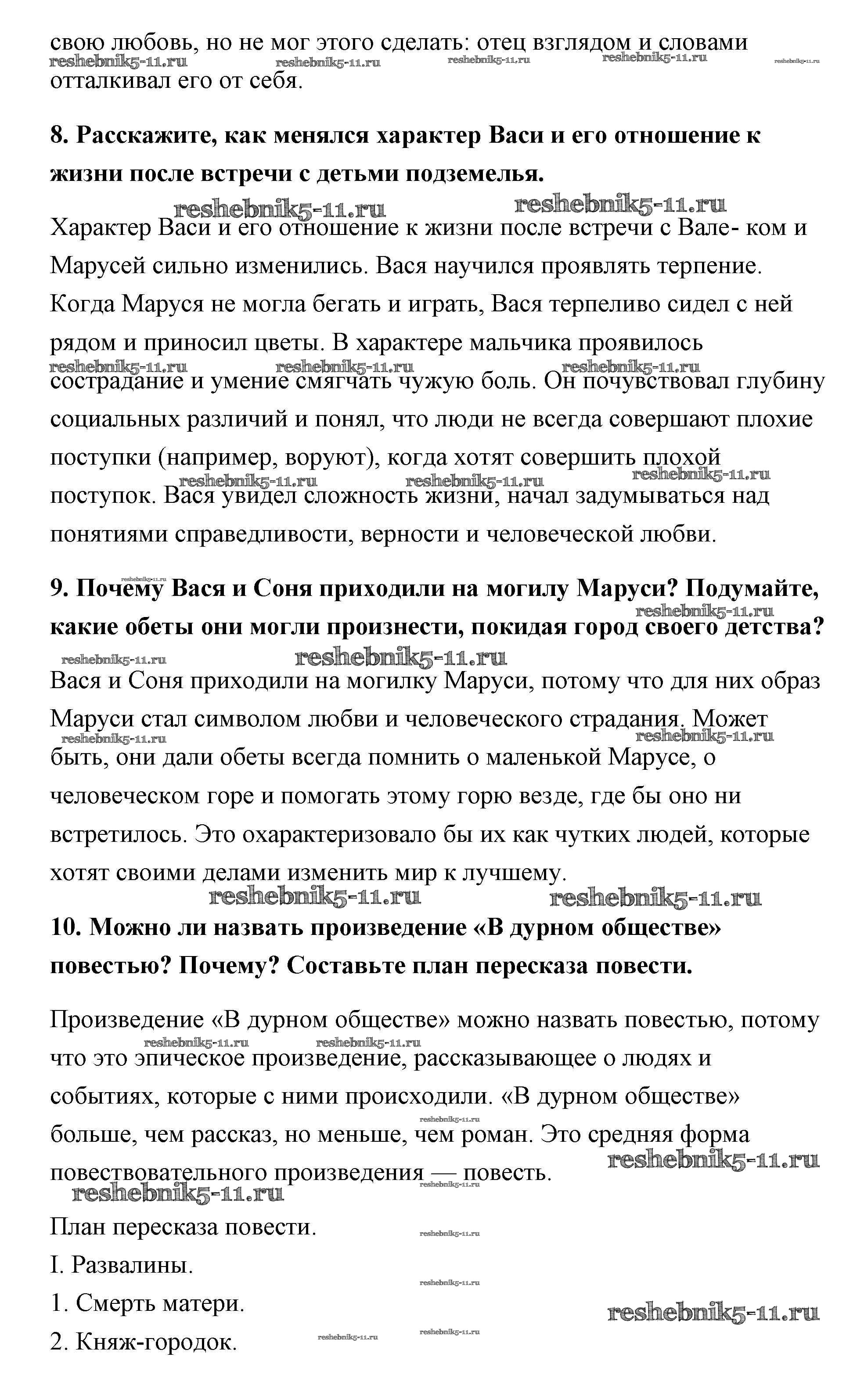 Готовая домашняя работа с ответами по Литературе за 5 класс Коровина, Коровин, Журавлев Учебник Часть 1, 2 Просвещение 2016 ФГОС - Короленко (Страницы) 51