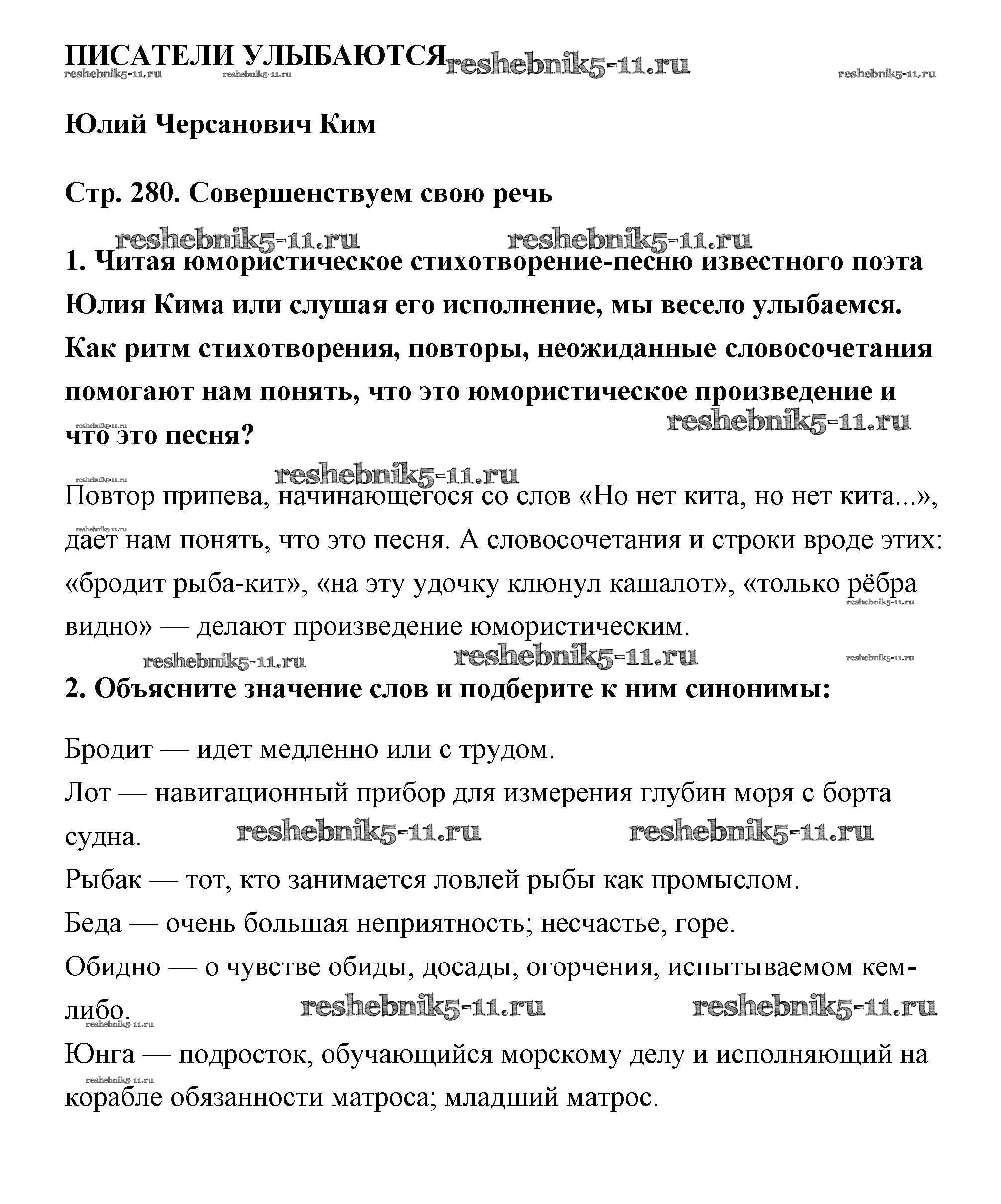 Готовая домашняя работа с ответами по Литературе за 5 класс Коровина, Коровин, Журавлев Учебник Часть 1, 2 Просвещение 2016 ФГОС - Ким (Страницы) 280