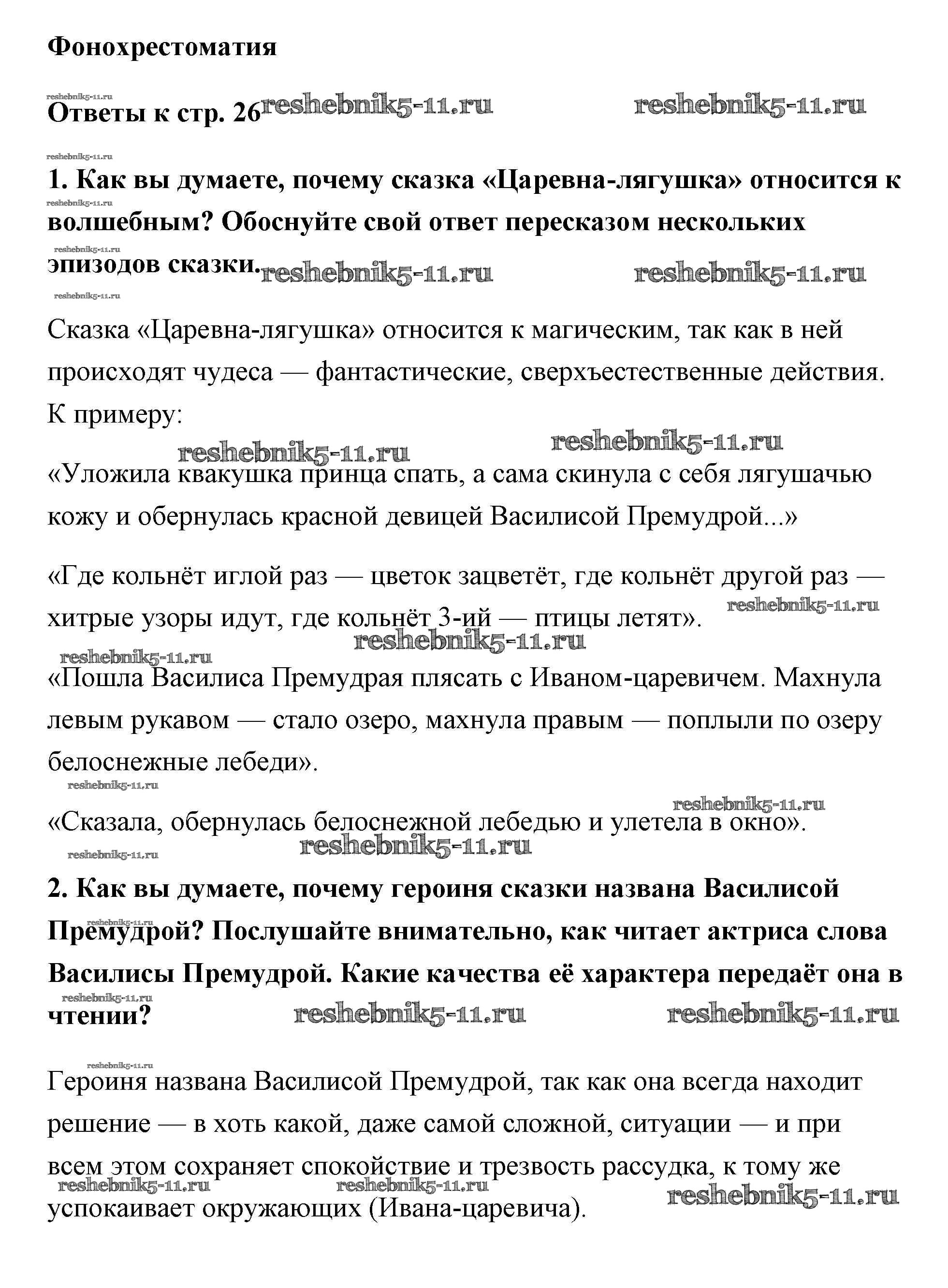Готовая домашняя работа с ответами по Литературе за 5 класс Коровина, Коровин, Журавлев Учебник Часть 1, 2 Просвещение 2016 ФГОС - Часть 1 (Страницы) 26
