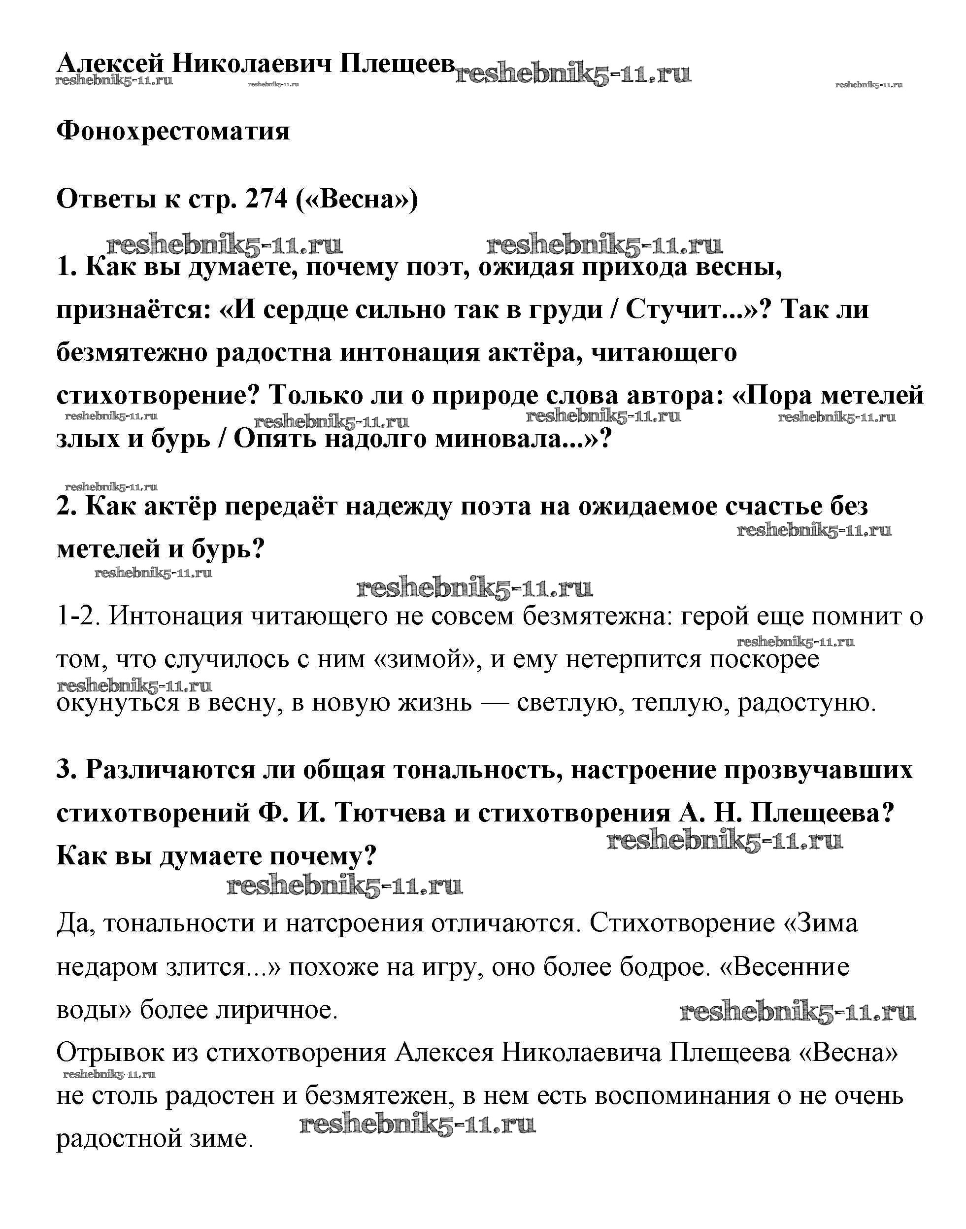 Готовая домашняя работа с ответами по Литературе за 5 класс Коровина, Коровин, Журавлев Учебник Часть 1, 2 Просвещение 2016 ФГОС - Часть 1 (Страницы) 274