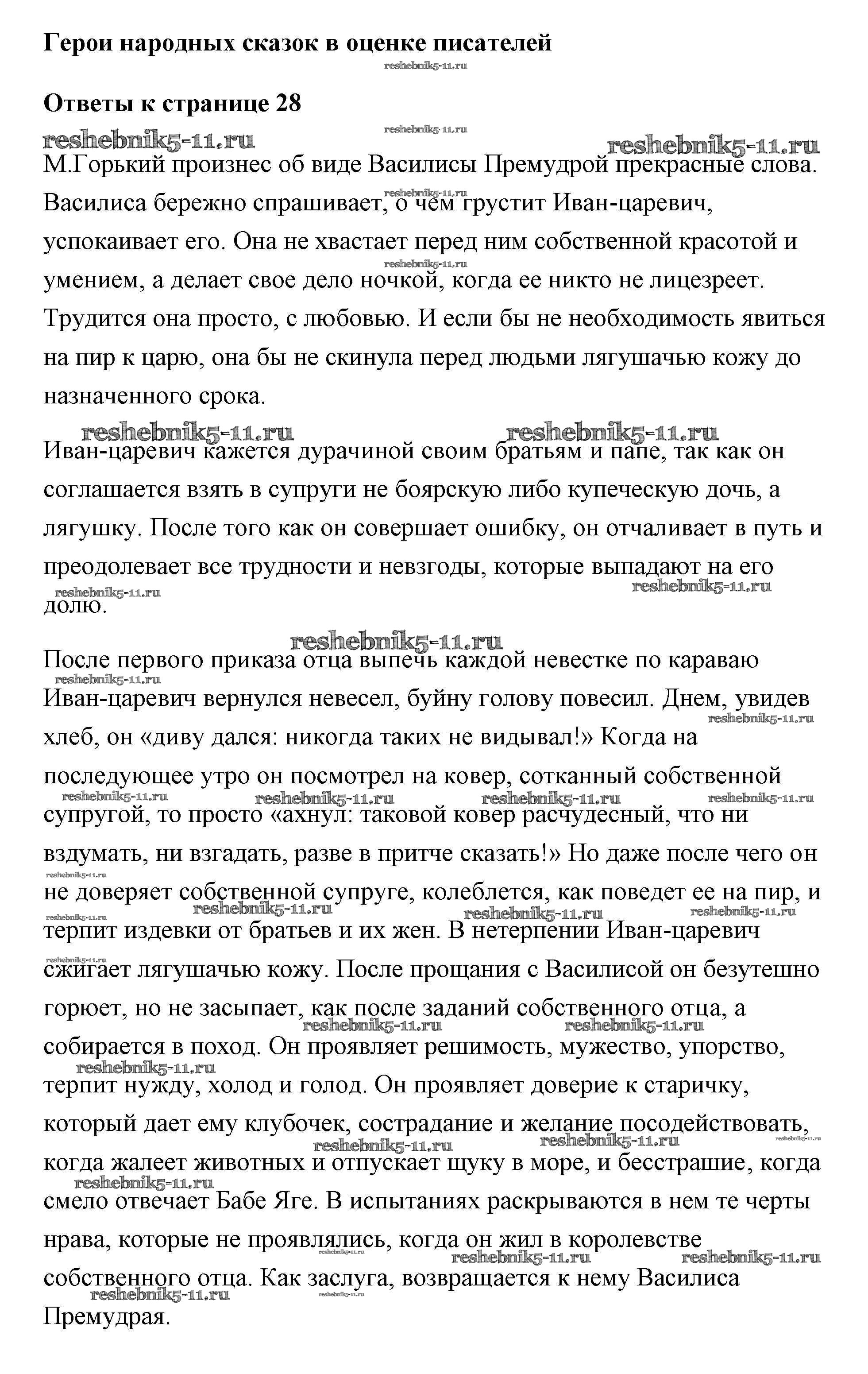 Готовая домашняя работа с ответами по Литературе за 5 класс Коровина, Коровин, Журавлев Учебник Часть 1, 2 Просвещение 2016 ФГОС - Часть 1 (Страницы) 28