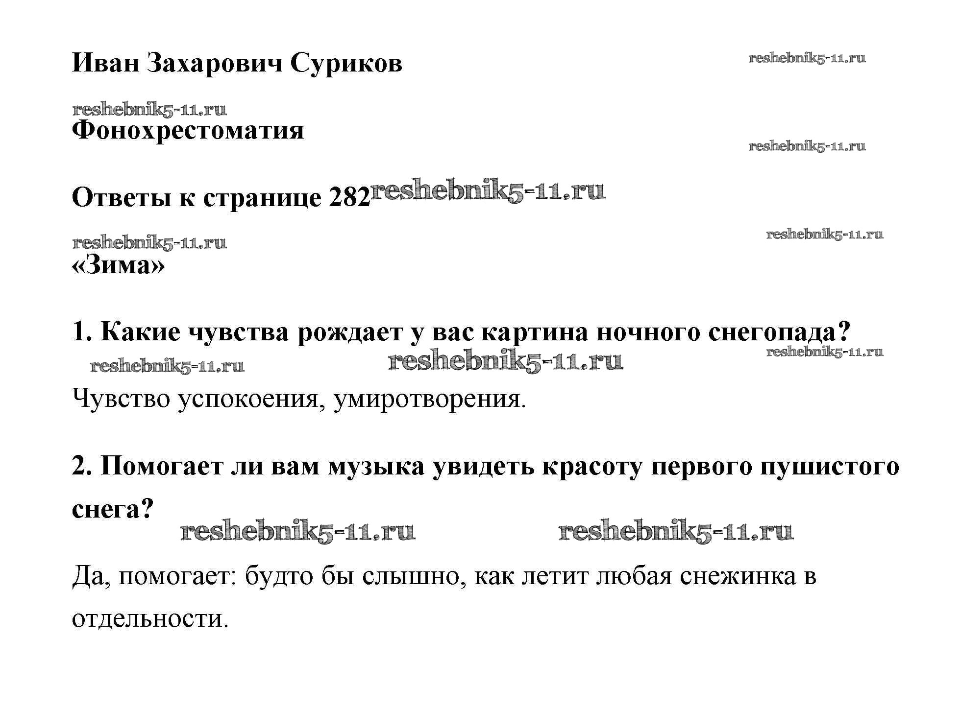Готовая домашняя работа с ответами по Литературе за 5 класс Коровина, Коровин, Журавлев Учебник Часть 1, 2 Просвещение 2016 ФГОС - Часть 1 (Страницы) 282
