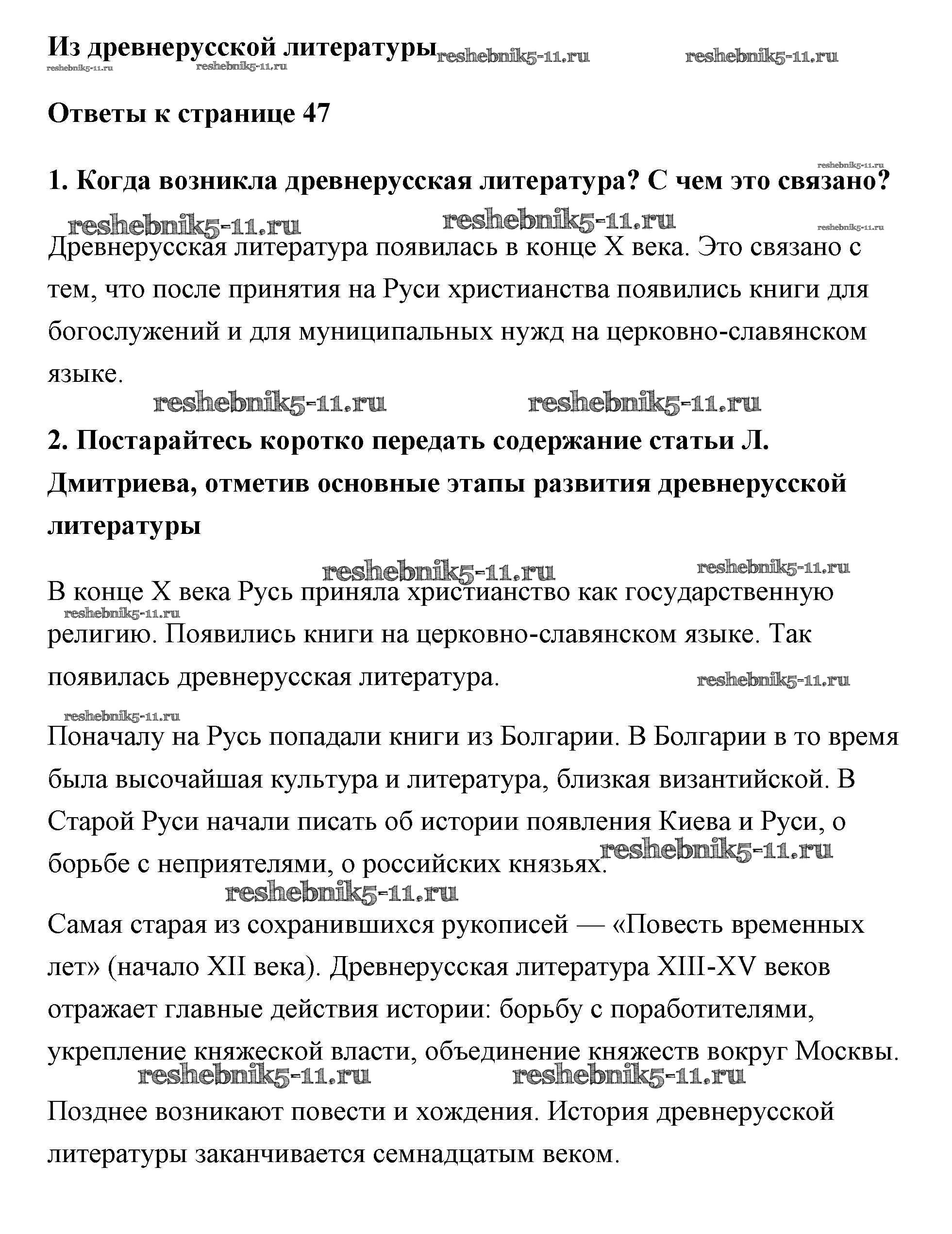 Готовая домашняя работа с ответами по Литературе за 5 класс Коровина, Коровин, Журавлев Учебник Часть 1, 2 Просвещение 2016 ФГОС - Часть 1 (Страницы) 47