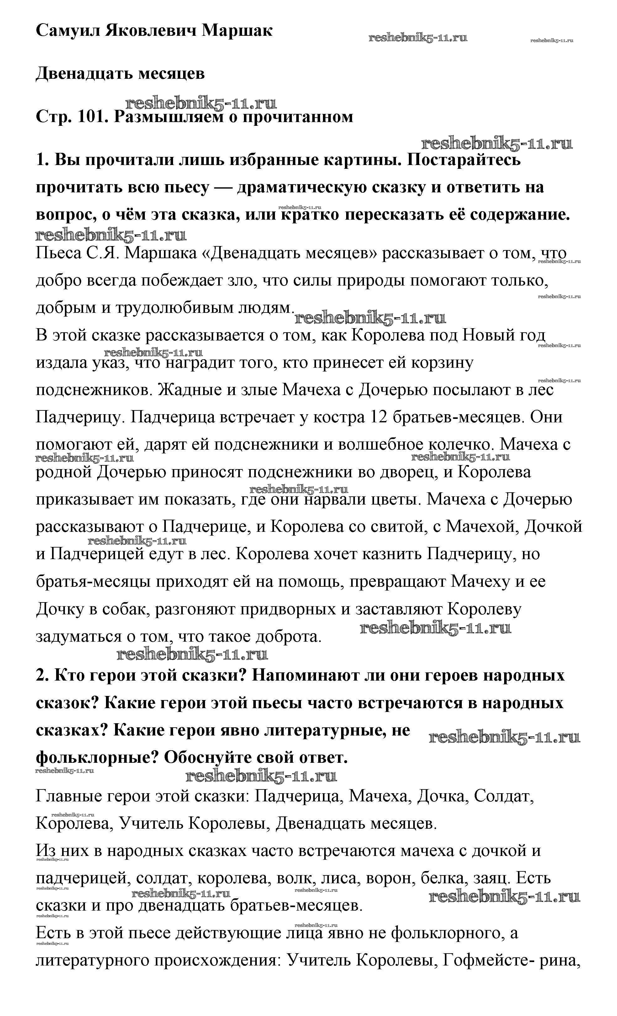 Готовая домашняя работа с ответами по Литературе за 5 класс Коровина, Коровин, Журавлев Учебник Часть 1, 2 Просвещение 2016 ФГОС - Маршак (Страницы) 101