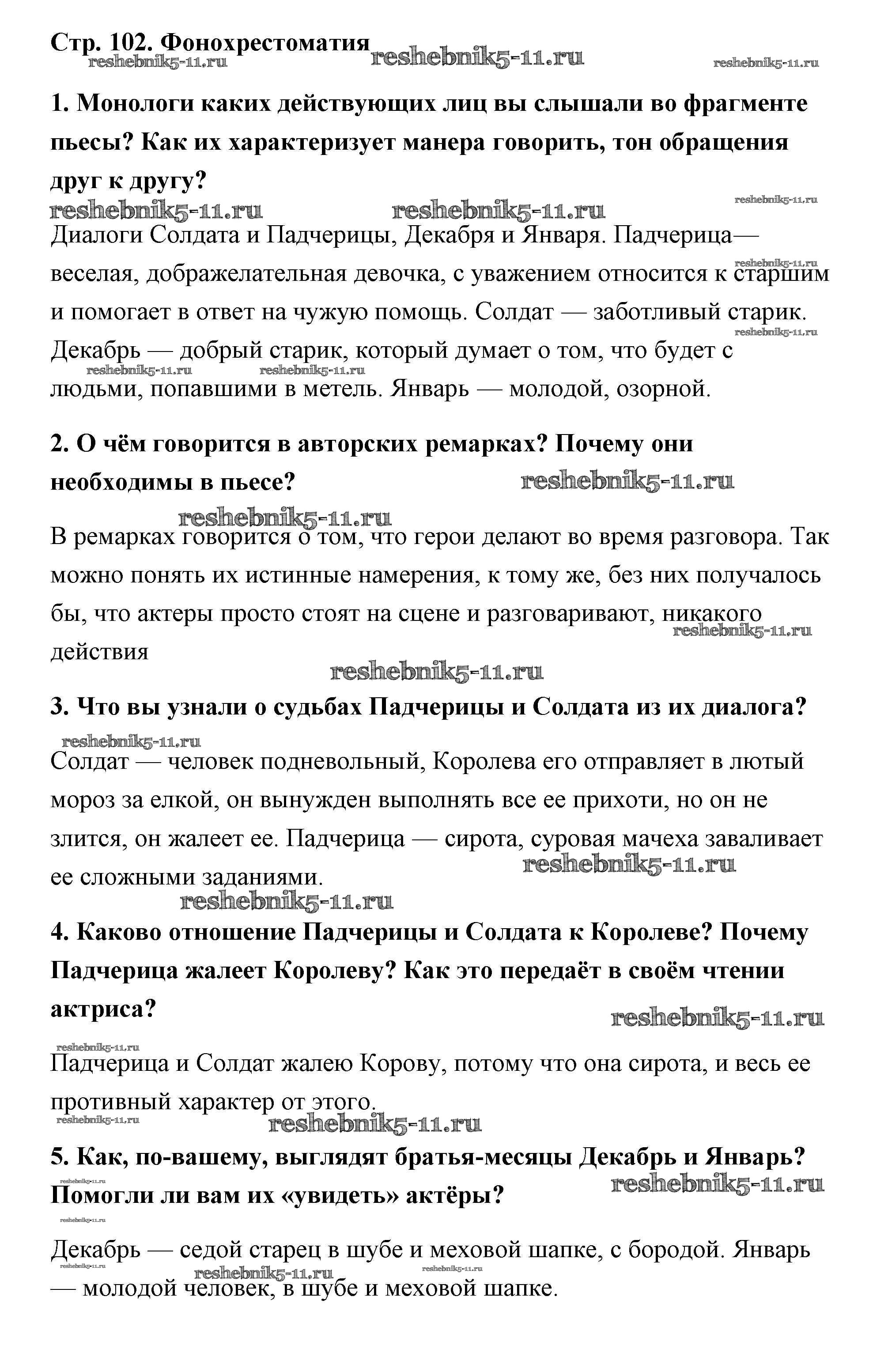 Готовая домашняя работа с ответами по Литературе за 5 класс Коровина, Коровин, Журавлев Учебник Часть 1, 2 Просвещение 2016 ФГОС - Маршак (Страницы) 102