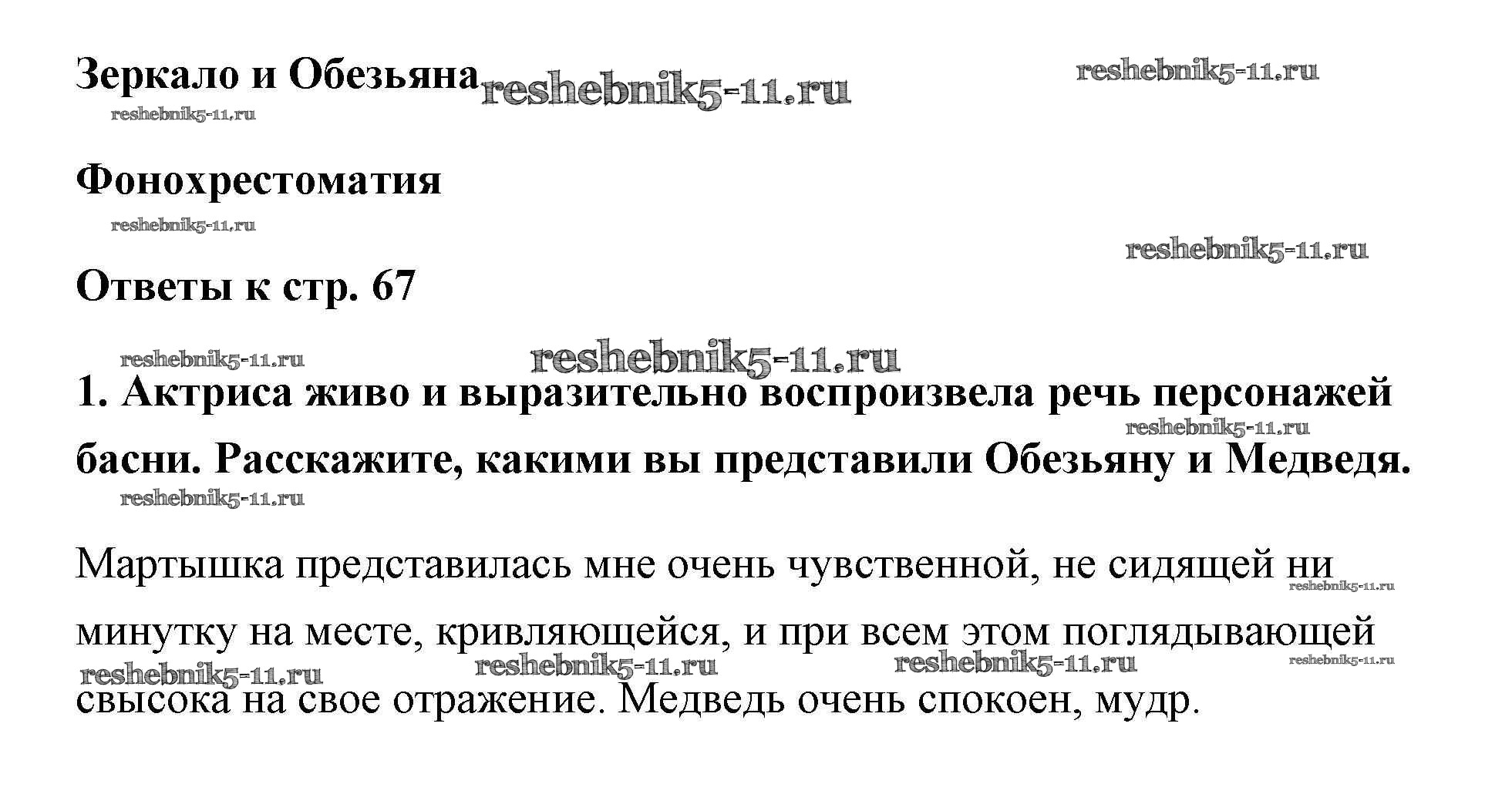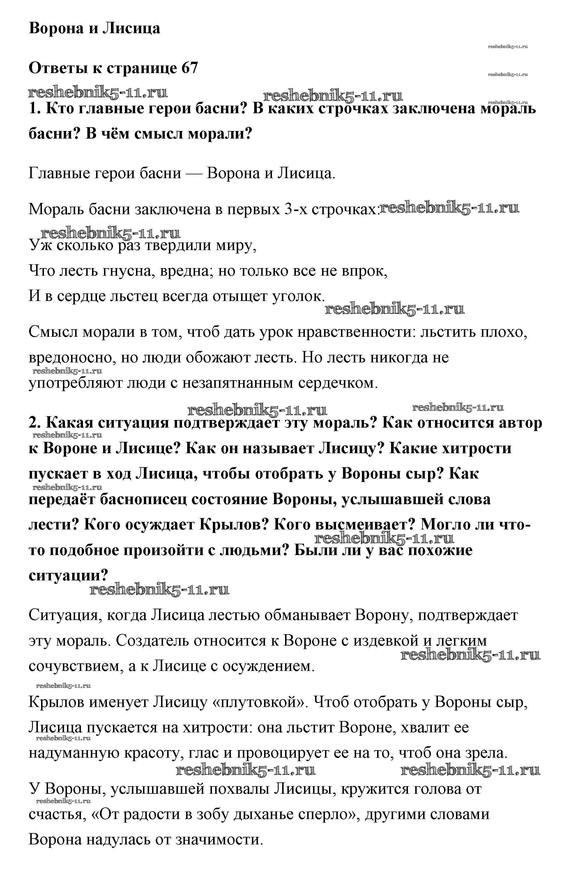 Готовая домашняя работа с ответами по Литературе за 5 класс Коровина, Коровин, Журавлев Учебник Часть 1, 2 Просвещение 2016 ФГОС - Часть 1 (Страницы) 67