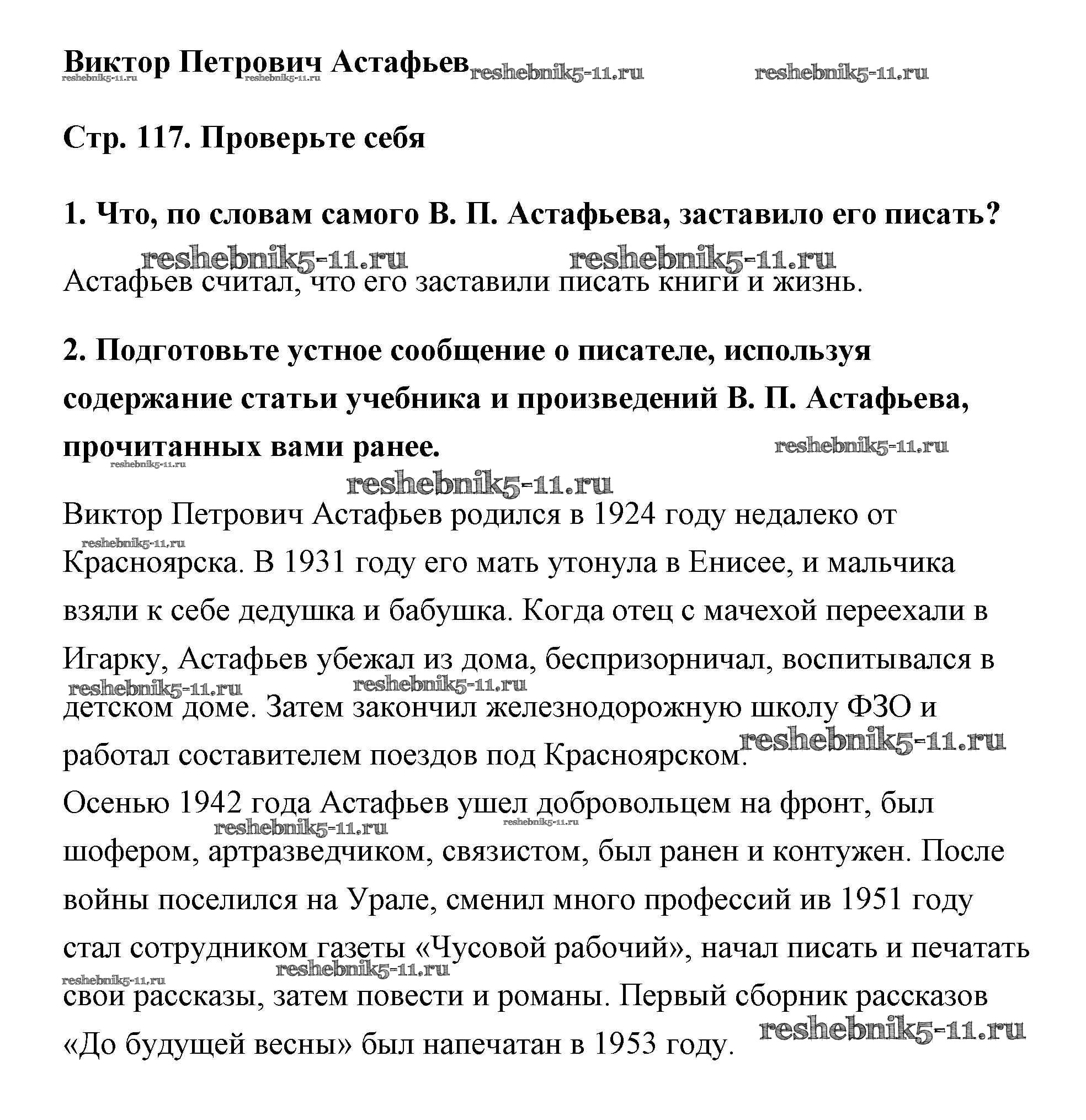 Готовая домашняя работа с ответами по Литературе за 5 класс Коровина, Коровин, Журавлев Учебник Часть 1, 2 Просвещение 2016 ФГОС - Астафьев (Страницы) 117