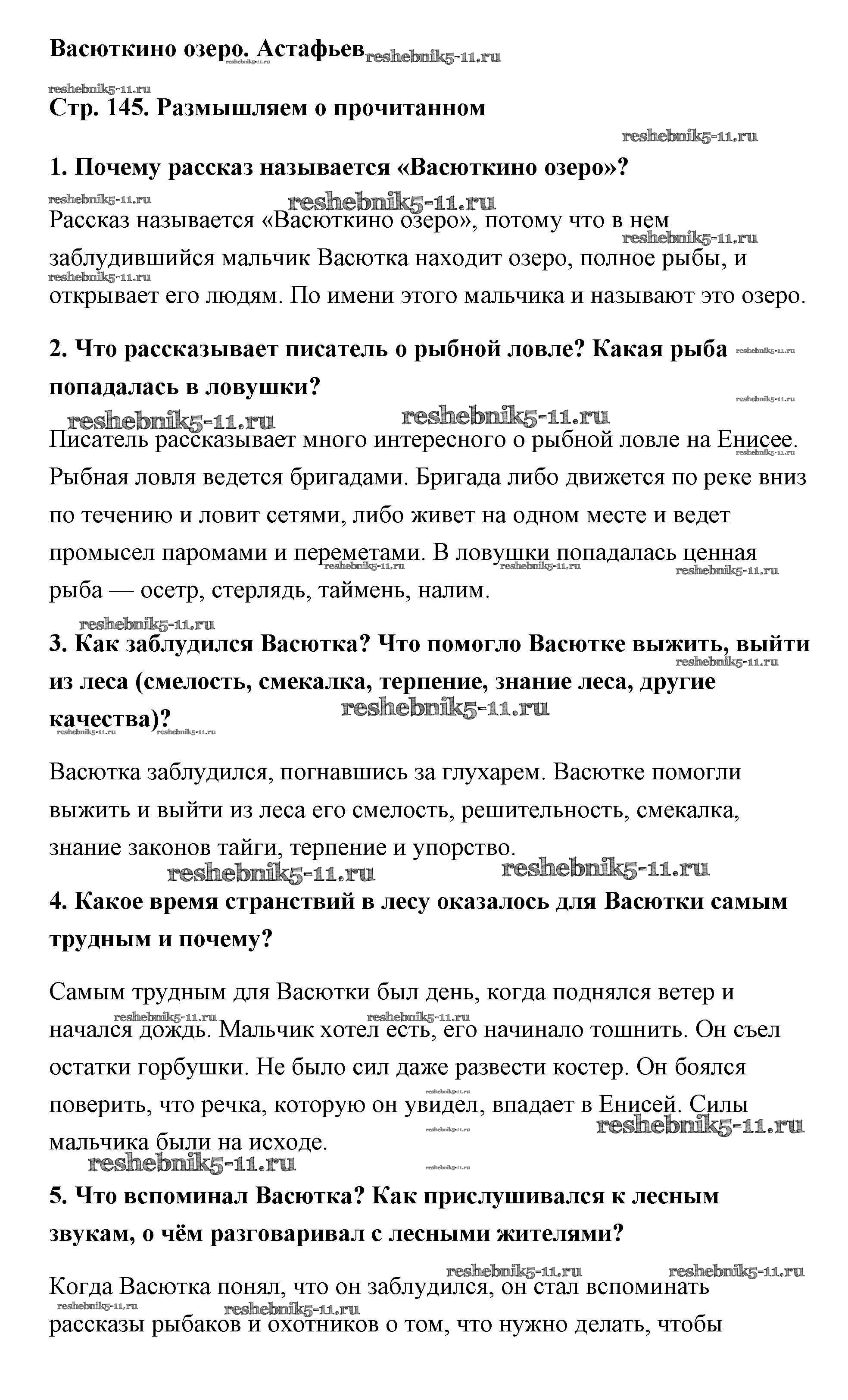Готовая домашняя работа с ответами по Литературе за 5 класс Коровина, Коровин, Журавлев Учебник Часть 1, 2 Просвещение 2016 ФГОС - Астафьев (Страницы) 145
