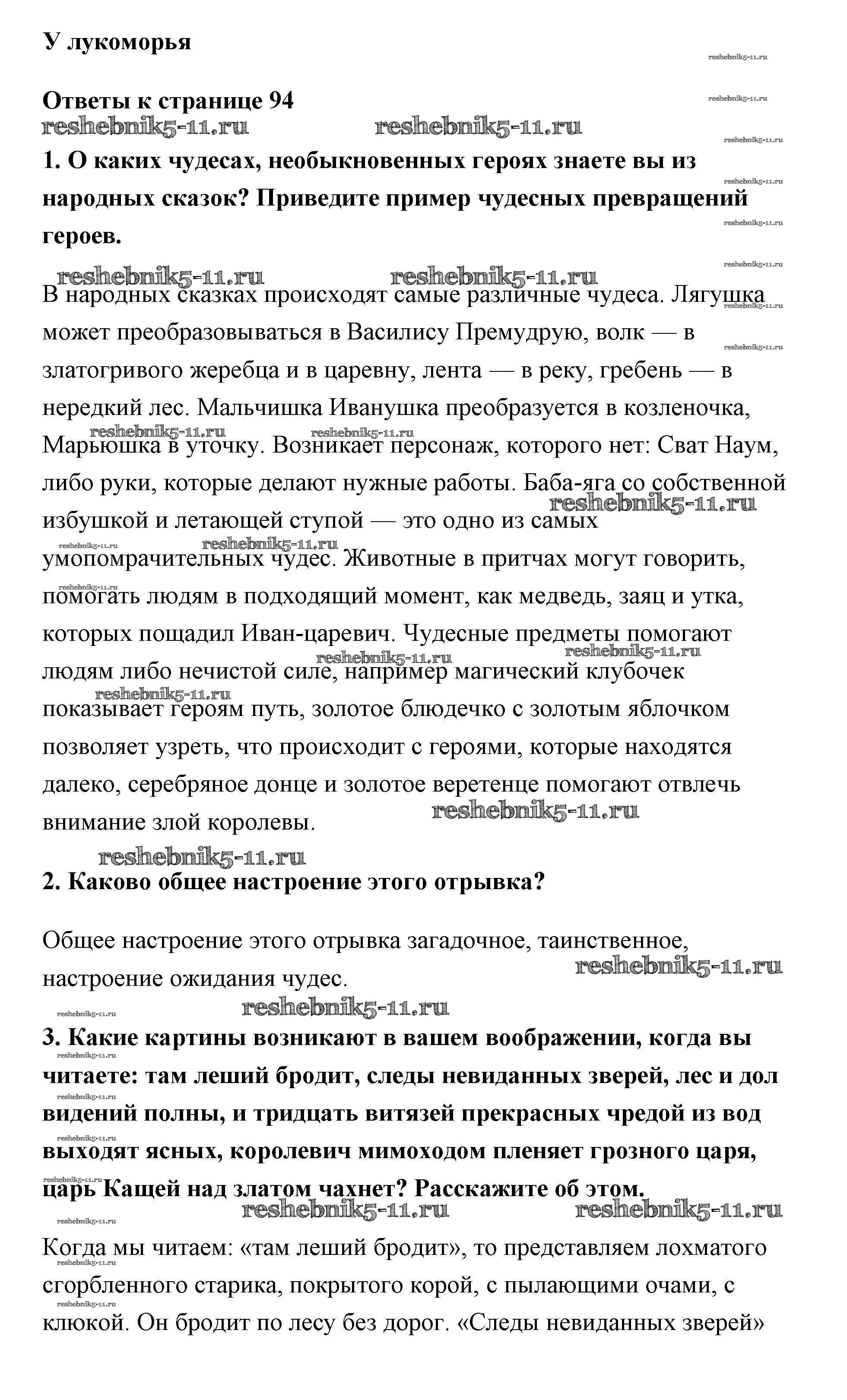 Готовая домашняя работа с ответами по Литературе за 5 класс Коровина, Коровин, Журавлев Учебник Часть 1, 2 Просвещение 2016 ФГОС - Часть 1 (Страницы) 94