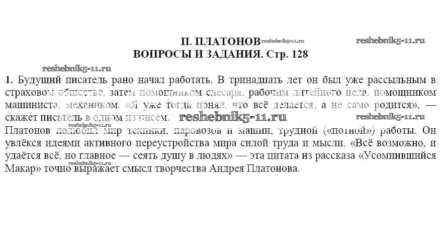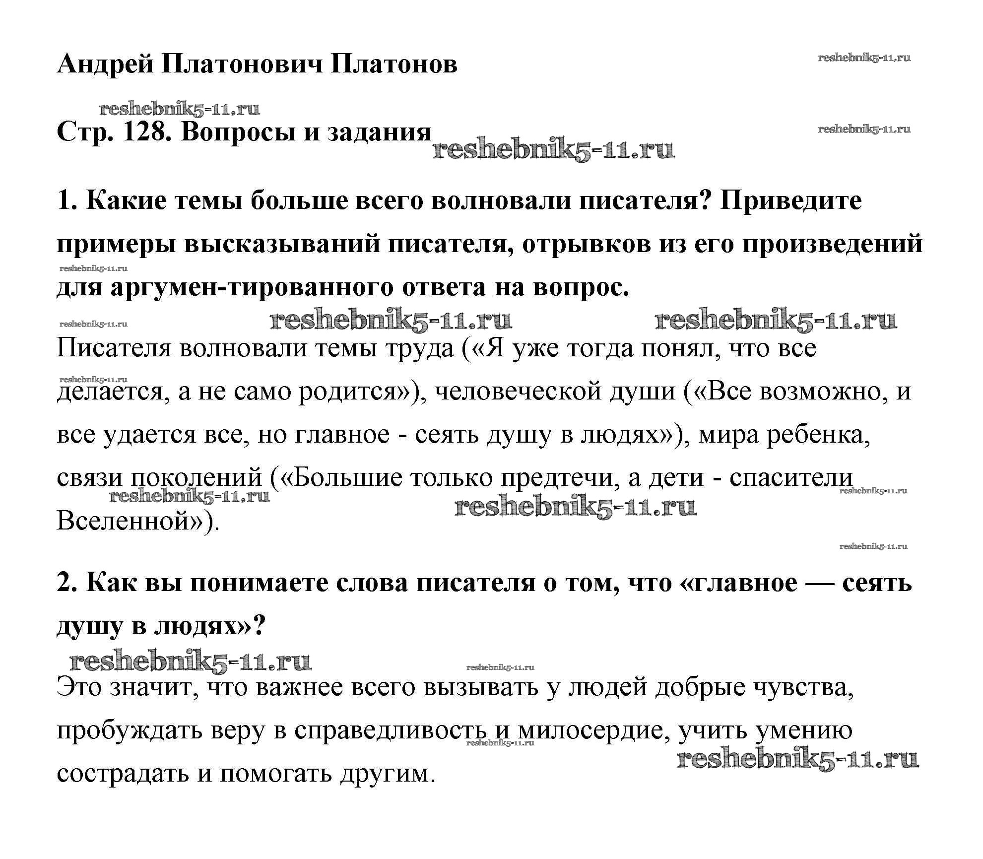 Готовая домашняя работа с ответами по Литературе за 5 класс Чертов, Трубина, Ипполитова, Мамонова Учебник Часть 1, 2 Просвещение 2018 ФГОС - А.П. Платонов страница 128