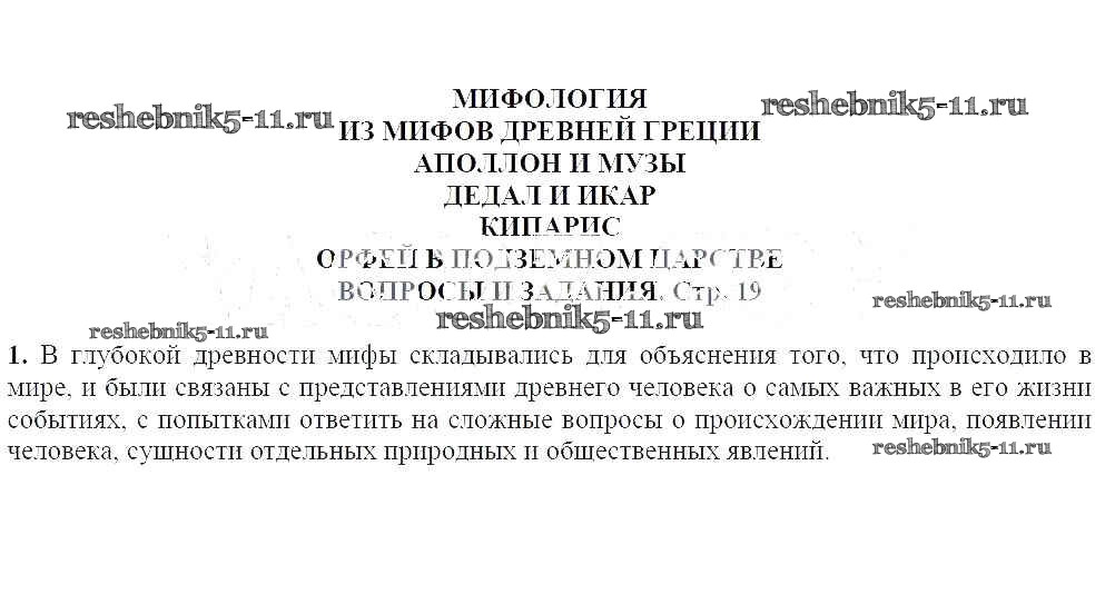 Готовая домашняя работа с ответами по Литературе за 5 класс Чертов, Трубина, Ипполитова, Мамонова Учебник Часть 1, 2 Просвещение 2018 ФГОС - Аполлон и музы 19