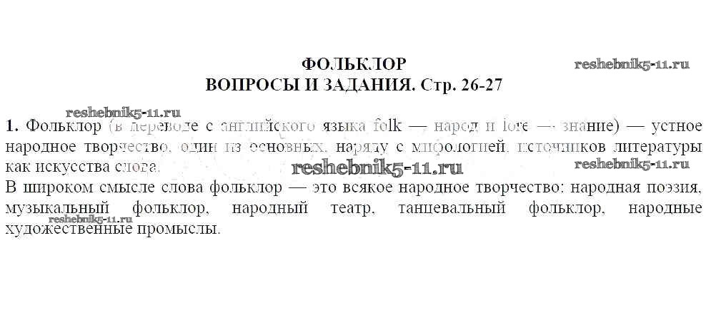Готовая домашняя работа с ответами по Литературе за 5 класс Чертов, Трубина, Ипполитова, Мамонова Учебник Часть 1, 2 Просвещение 2018 ФГОС - Фольклор 26
