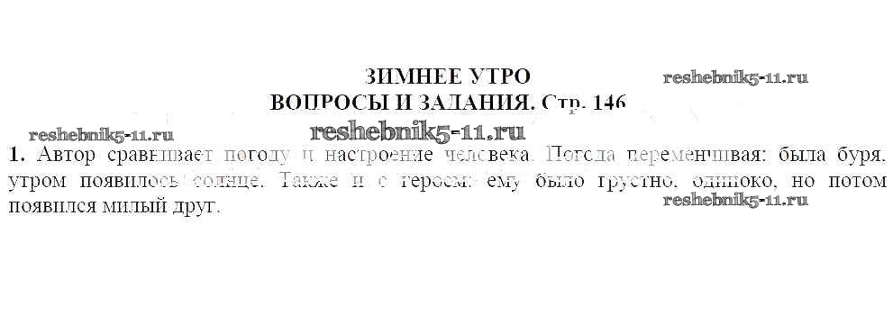 Готовая домашняя работа с ответами по Литературе за 5 класс Чертов, Трубина, Ипполитова, Мамонова Учебник Часть 1, 2 Просвещение 2018 ФГОС - Зимнее утро 146