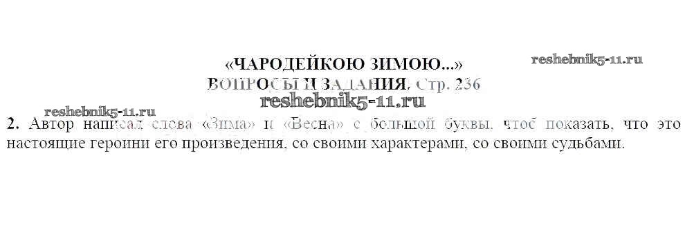 Готовая домашняя работа с ответами по Литературе за 5 класс Чертов, Трубина, Ипполитова, Мамонова Учебник Часть 1, 2 Просвещение 2018 ФГОС - Чародейкою зимою 236