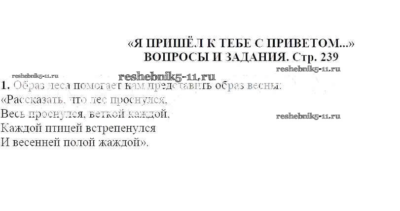 Готовая домашняя работа с ответами по Литературе за 5 класс Чертов, Трубина, Ипполитова, Мамонова Учебник Часть 1, 2 Просвещение 2018 ФГОС - Я пришел к тебе с приветом 239